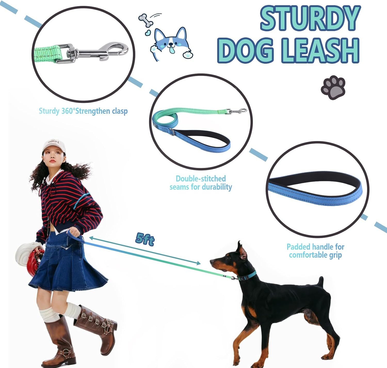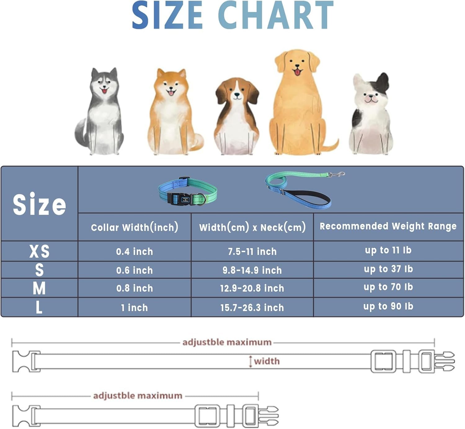High Reflective : The BlueGreen puppy leash with collar set features a dual reflective strap design, which has reflective function, which means we can also pay attention to our friends in low light environments. This is particularly important for people who walk at night. The puppy collars and leash set and reflective material not only allow you to see the dog, but also make it easier for others to see you and your friends, thereby improving the safety of the dog on the road.