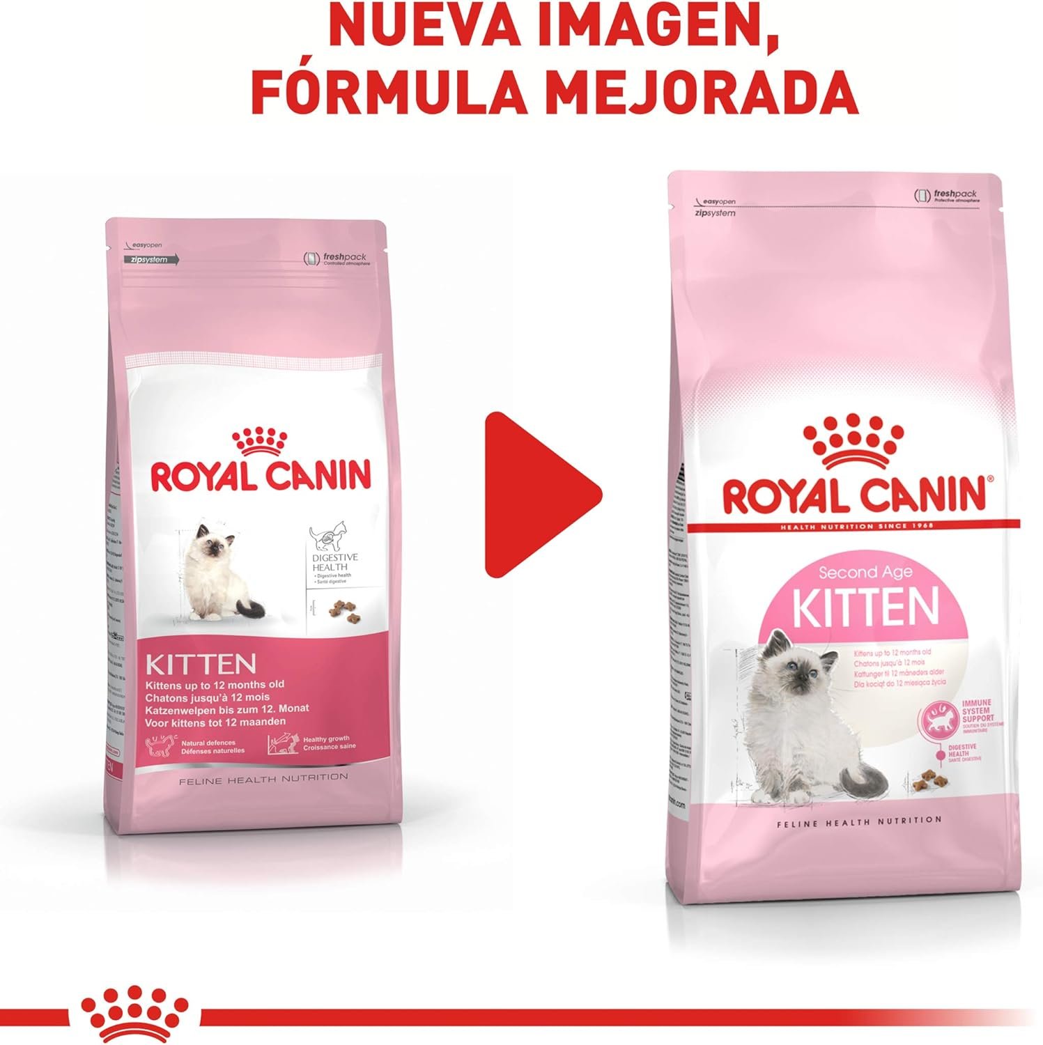 By the time a kitten gets to be around 4 months old, their nutritional needs change and growth rate slows, but their activity levels skyrocket. With intensifying energy levels, developing bones, growing muscles, and emerging teeth, older kittens need a different kind of kitten cat food than a younger baby cat. But your kitten is a kitten for 12 months, no matter their size. Keeping them on this formula from 4 months to 1 year old helps set up a healthy foundation for life. Royal Canin Kitten Dry Cat Food gives your kitten a healthy start with the nutritional precision your cat needs during this stage of kittenhood between 4 months and 1 year old. Clinically proven antioxidants, including vitamins E and C, help support the healthy development of immune systems. This dry kitten food has a combination of prebiotics and highly digestible proteins that help promote a healthy balance of intestinal microbiota for digestive health. The adapted level of proteins, vitamins, and minerals supports the high energy needs of your kittens’ growing bones and muscles during this final stage of kittenhood. The unique kibble texture is small and easy to chew for a growing kitten, and tailor-made for their new teeth. Keep them on this dry cat food diet with specialized nutrients until 12 months, regardless of size. Then switch to Royal Canin Feline Care Nutrition Adult Cat Food for continued healthy development. With over 50 years of scientific research and observation, Royal Canin continues to deliver targeted nutrition to feed every pet’s magnificence. Not satisfied? Then neither are we. Our formulas are 100% satisfaction guaranteed. (Just contact us for more details.).