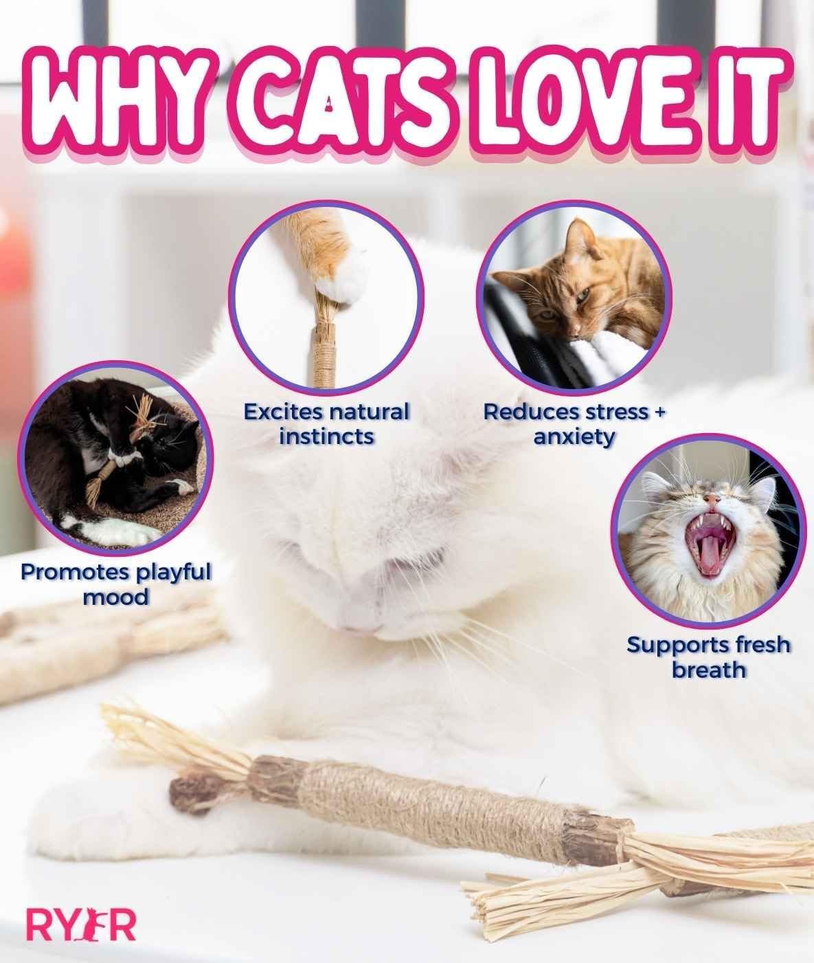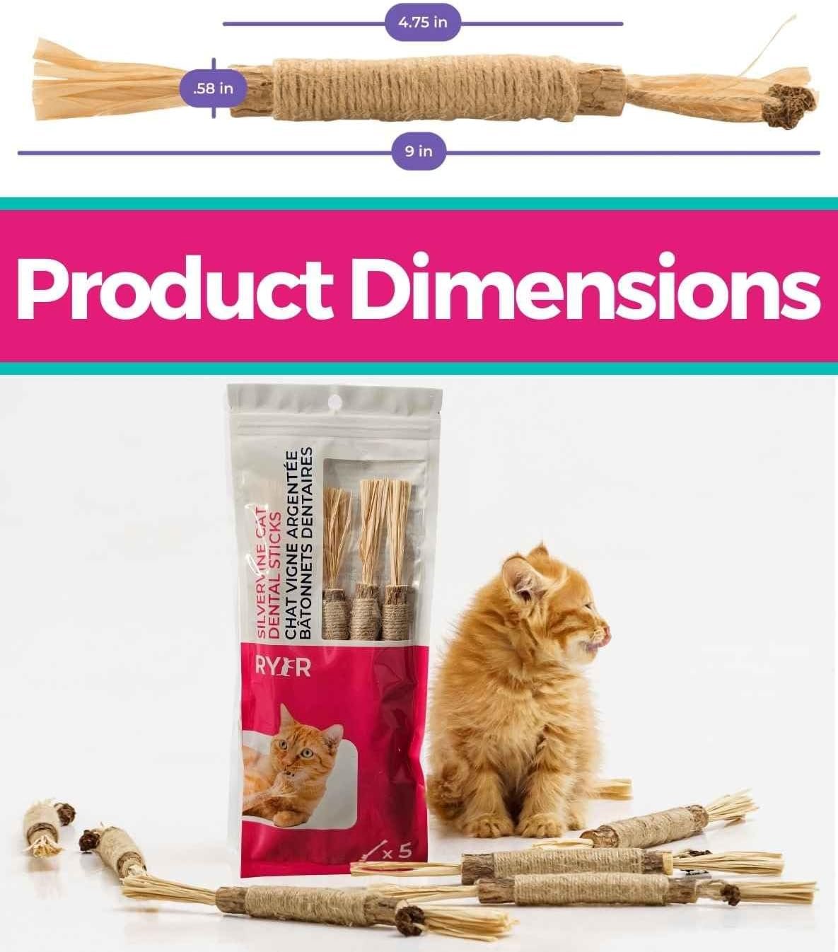 RYERCAT Silvervine Sticks for Cats – All-Natural Cat Chew Toy for Aggressive Chewers, Kitten Teething, and Dental Health – Silvervine Cat Toy for Hours of Fun and Relaxation (5 Pack)