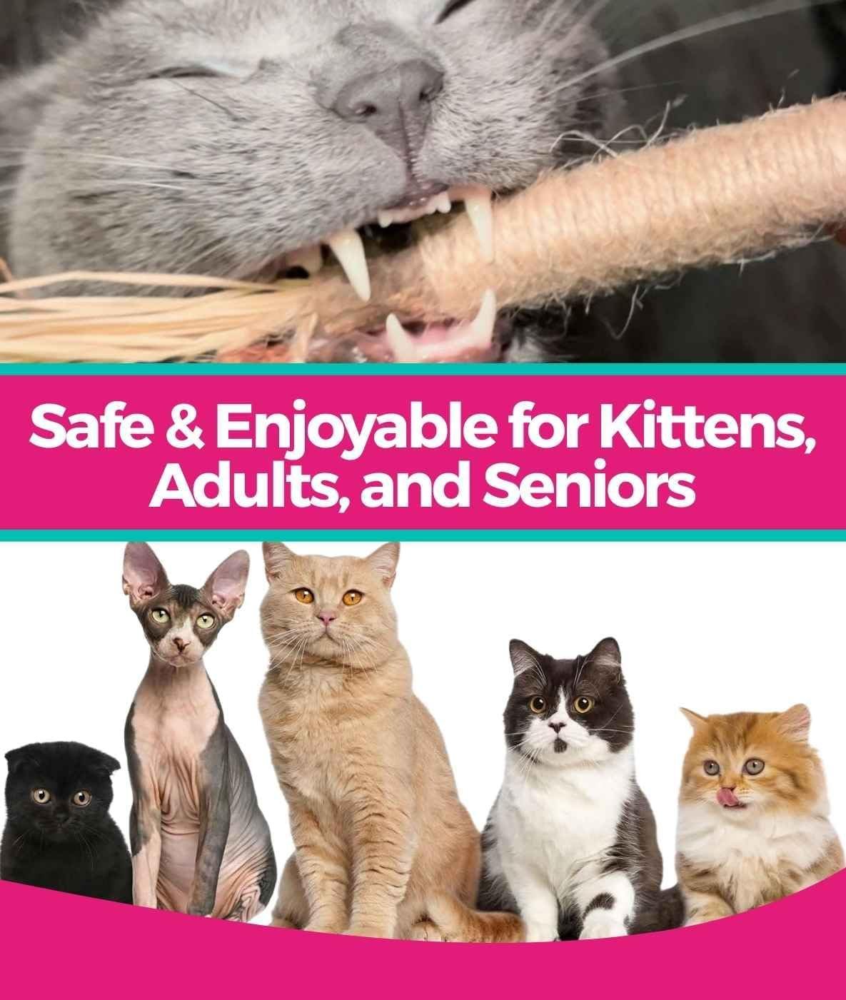 【Multipurpose Cat Chew Toy】 Use our cat chew sticks as a fun and interactive toy, a training tool, or as a way to help your cat relax and unwind. Discover the Benefits of Silvervine: Silvervine is a natural alternative to catnip that is more potent and longer-lasting, making it the perfect way to keep your cat happy and healthy.