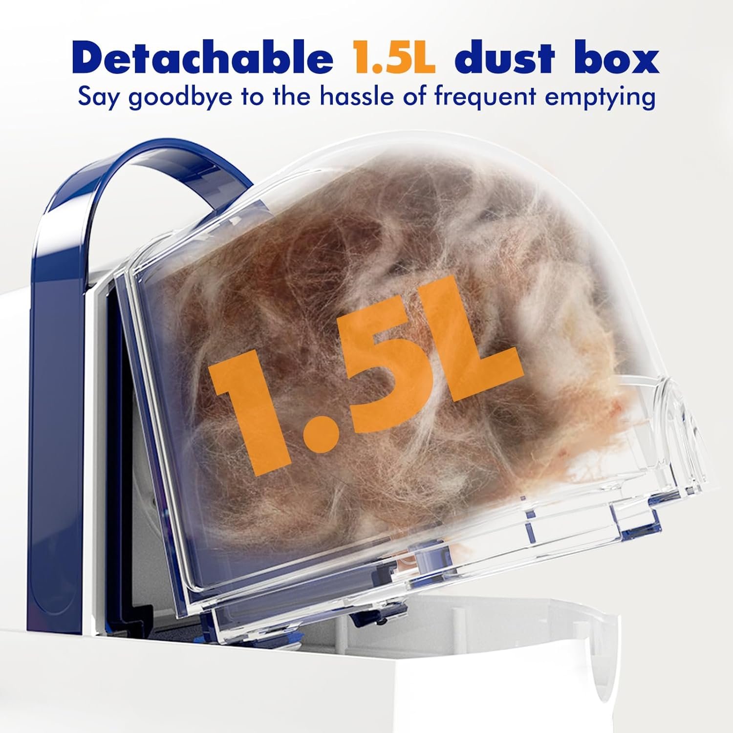 ✨【Effortless Maintenance for Busy Pet Owners】Our pet grooming vacuums come with a removable 1.5L dust cup, so you don’t have to empty it as often when grooming your pet, and the removable design makes it easy to clean the cup.5.2 feet (1.6m) flexible extension hose keeps your pet away from motor noise, perfect for sensitive or larger animals! The removable electric clippers’ head and filtration system allow for easy care and maintenance, saving time while increasing product life.