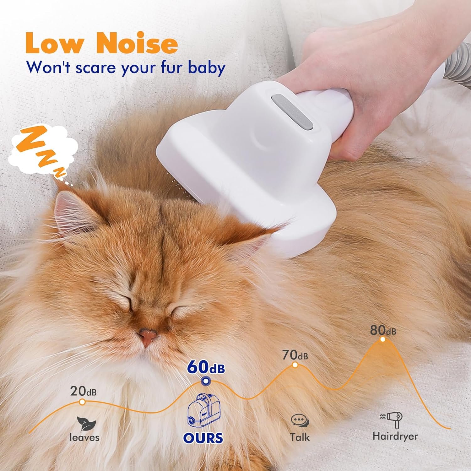 🍀【Whisper-Quiet Operation for Happy Pets】Protect your pet’s sensitive hearing with our ultra-quiet dog grooming vacuum. Our dog grooming kit’s noise is only 60 dB, ensuring a soothing grooming experience for pet. The vacuum features 3 adjustable suction levels, so you could start at a lower suction level and gradually increase for ultimate pet comfort. No more grooming stress—just serene moments and happy tails!