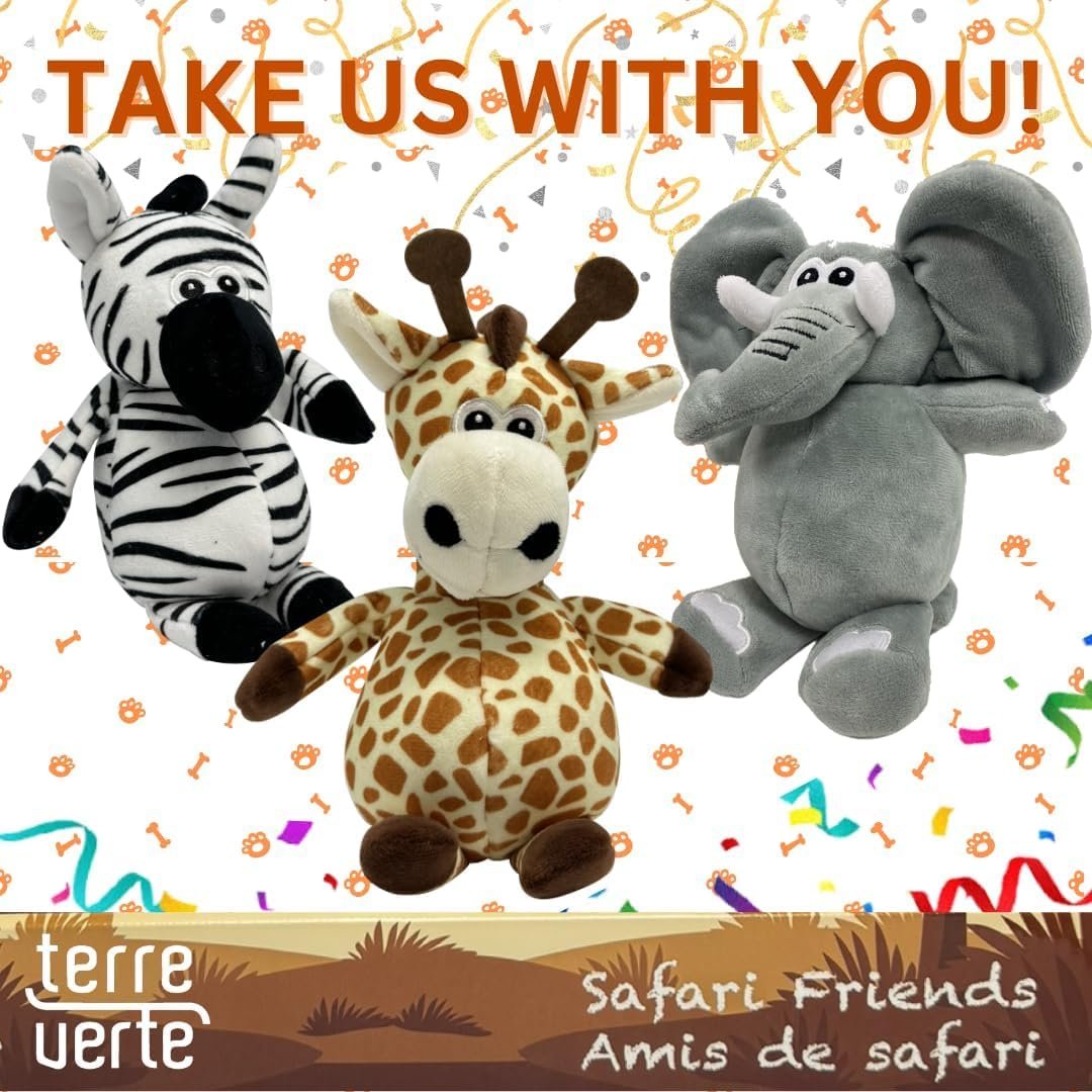 Squeaky Dog Toys: Terre Verte Safari Friends squeaky toys have built-in squeakers with hard-to-resist sounds. Fully arouse your dog’s interest to have fun and avoid destructive chewing.
