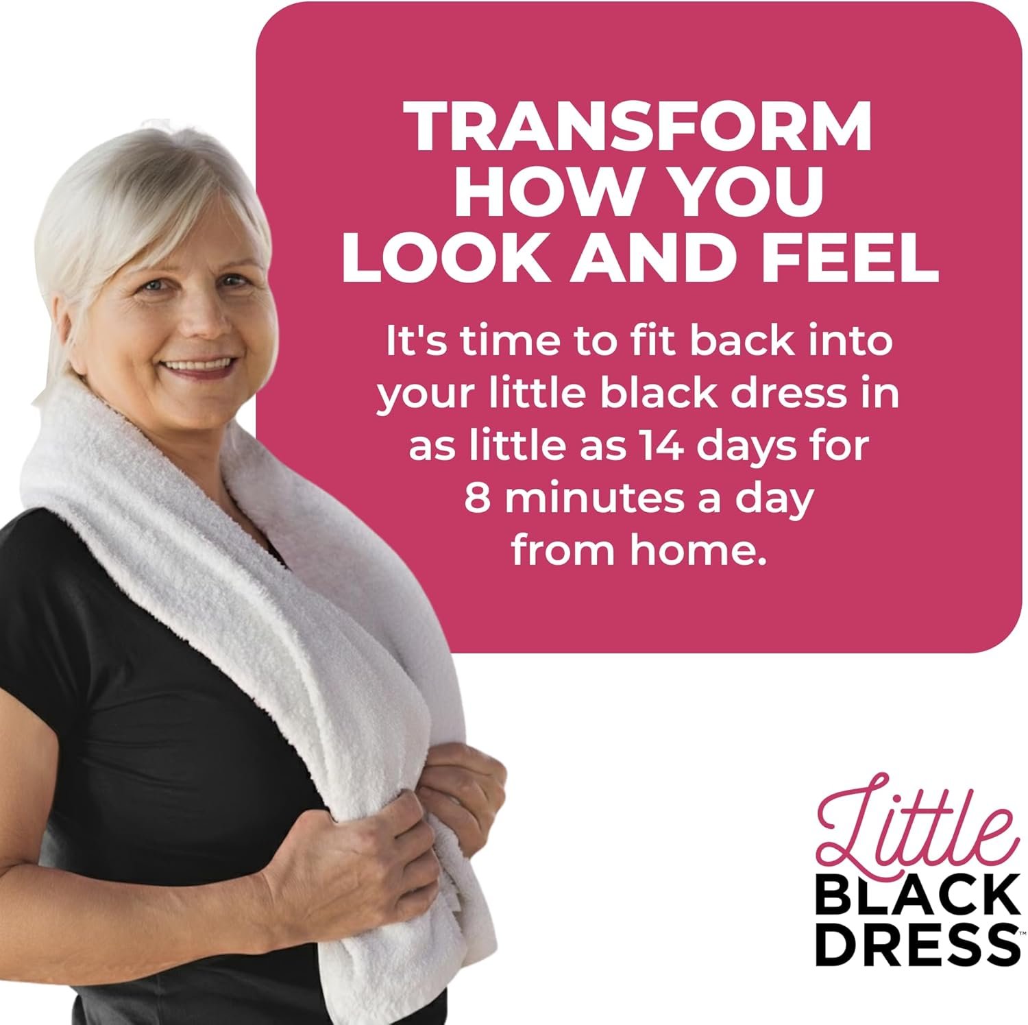 If you’re ready to fit back into your little black dress, our daily 8-minute workouts and healthy eating guidance are here to help you get there.