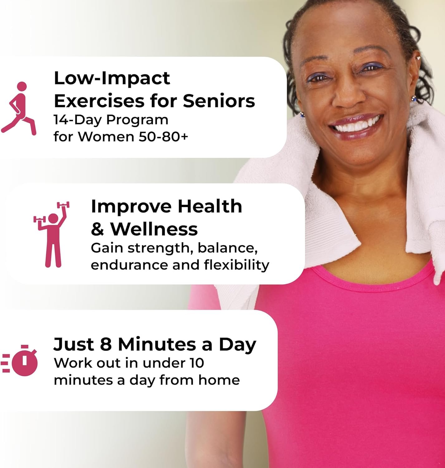 Women – it’s time to look and feel better. Have a special event coming up and want to show up looking your radiant best? Our 14-day senior exercise DVD program is here to help you reach that goal.