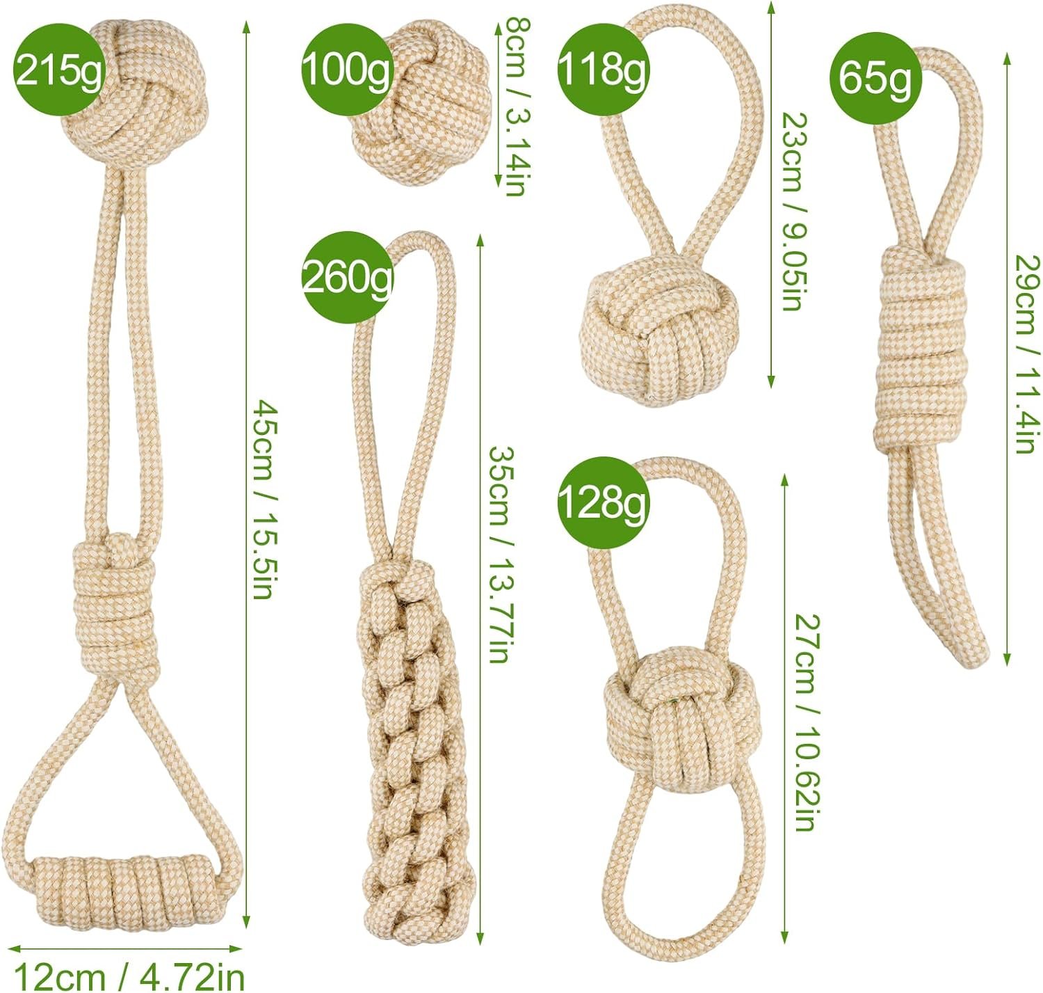 A selection of 6 different shapes of high-strength rope toys, perfectly suited to your dog’s instinctive needs like pulling, chasing, picking up, and chewing, so your dog can enjoy the thrill of the chase!