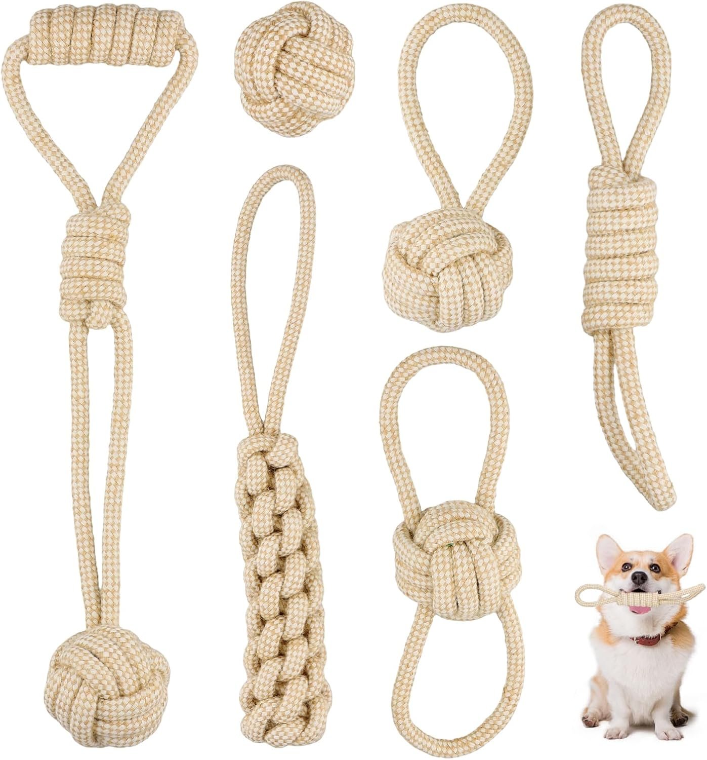 Set of 6 Dog Rope Toys, Dog Chew Ropes Made of Cotton & Hemp, Aggressive Chewers, Dog Rope Tug Pull Toy, Indestructible Dental Rope for Chewing and Teeth Cleaning, for Puppies, Small, Medium Dogs