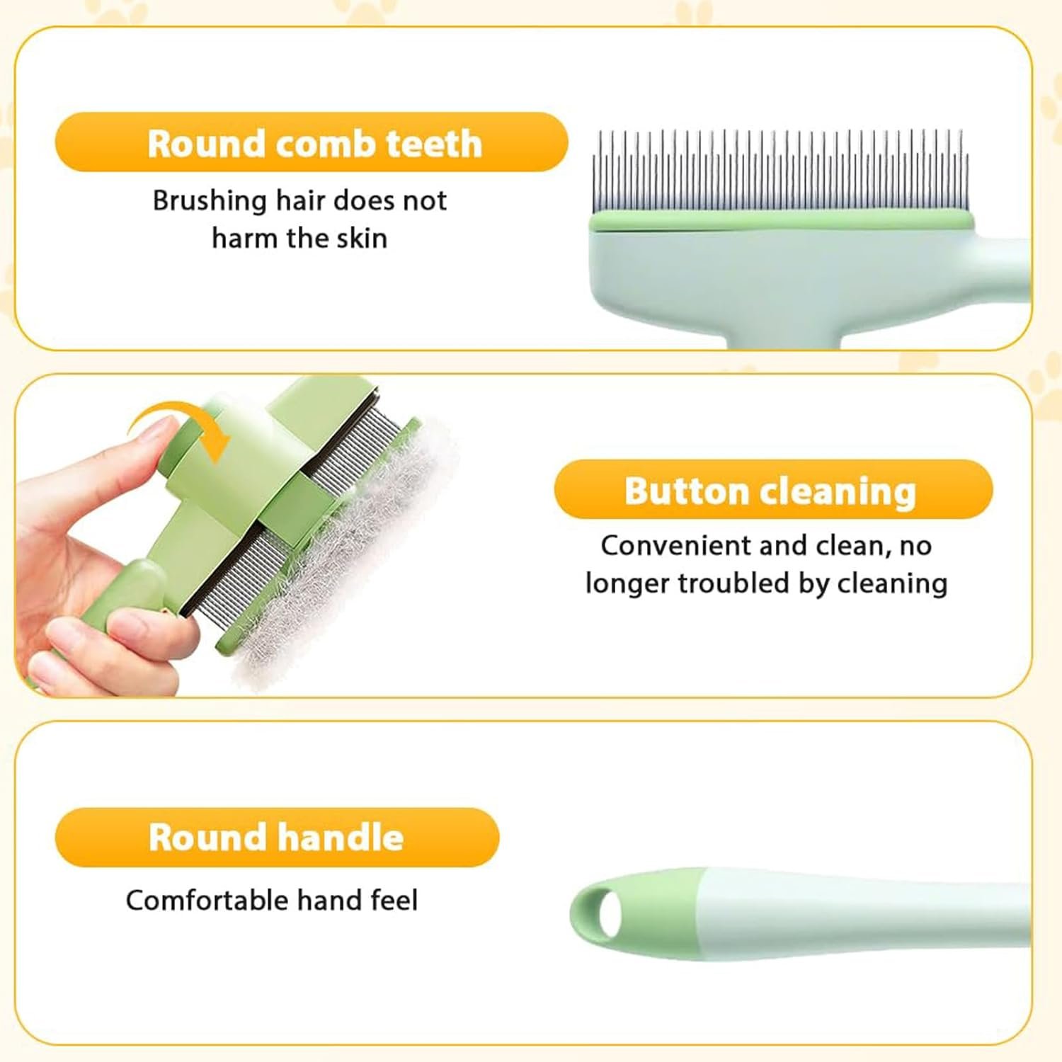 Designed for pets with short or long, thick hair, this grooming brush provides gentle yet effective deshedding and tick removal. Its ergonomic handle ensures ease of use, while the release button simplifies cleaning. A must-have pet accessory for home or travel, it caters to kittens, puppies, and promotes thorough coat care naturally.