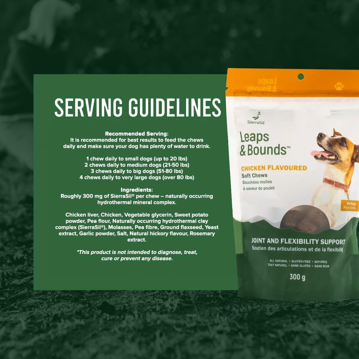 SierraSil® Leaps & Bounds – Chicken Flavoured Soft Chews for Dogs, Joint and Flexibility Support, Made in Canada, Great Tasting Treats, All Natural, Gluten-Free, Soy-Free – 300 g (100 Chews aprox)