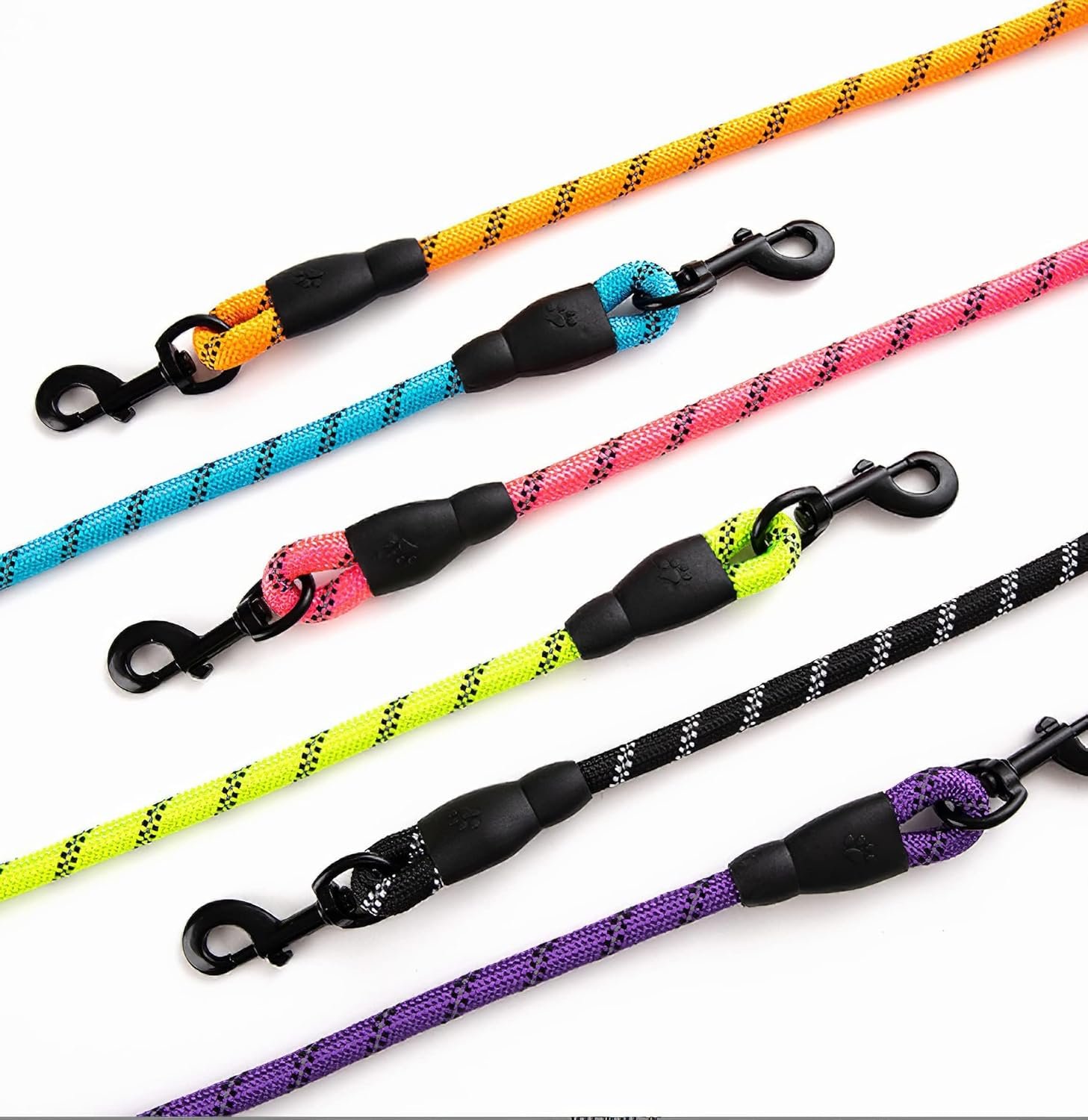 Durable: Made of sturdy 0.3-inch diameter climbing rope and durable 360-degree kink-free rust-proof swivel hooks, it is stronger than other standard dog leashes. And the very durable metal clip hooks won’t come off, ensuring you won’t lose control of your dog.