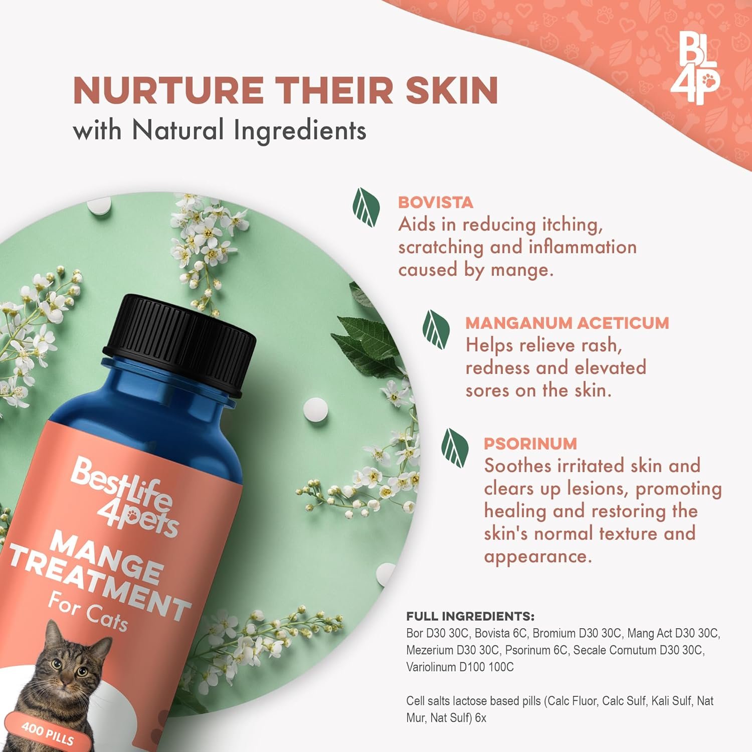BestLife4Pets All-Natural Skin & Coat Support for Cats is a natural supplement designed to support skin comfort and overall skin health in cats experiencing sensitivity related to environmental, seasonal, or grooming-related skin imbalances. This gentle, all-natural formula helps maintain normal skin condition and supports cats prone to dryness, flaking, excessive grooming, and coat imbalance. This formula supports overall feline skin wellness, helping maintain healthy-looking skin and coat condition, including support for itch-prone skin, visible dryness, uneven shedding, rough patches, and general skin discomfort, promoting a calmer, more balanced skin environment for everyday feline care.
