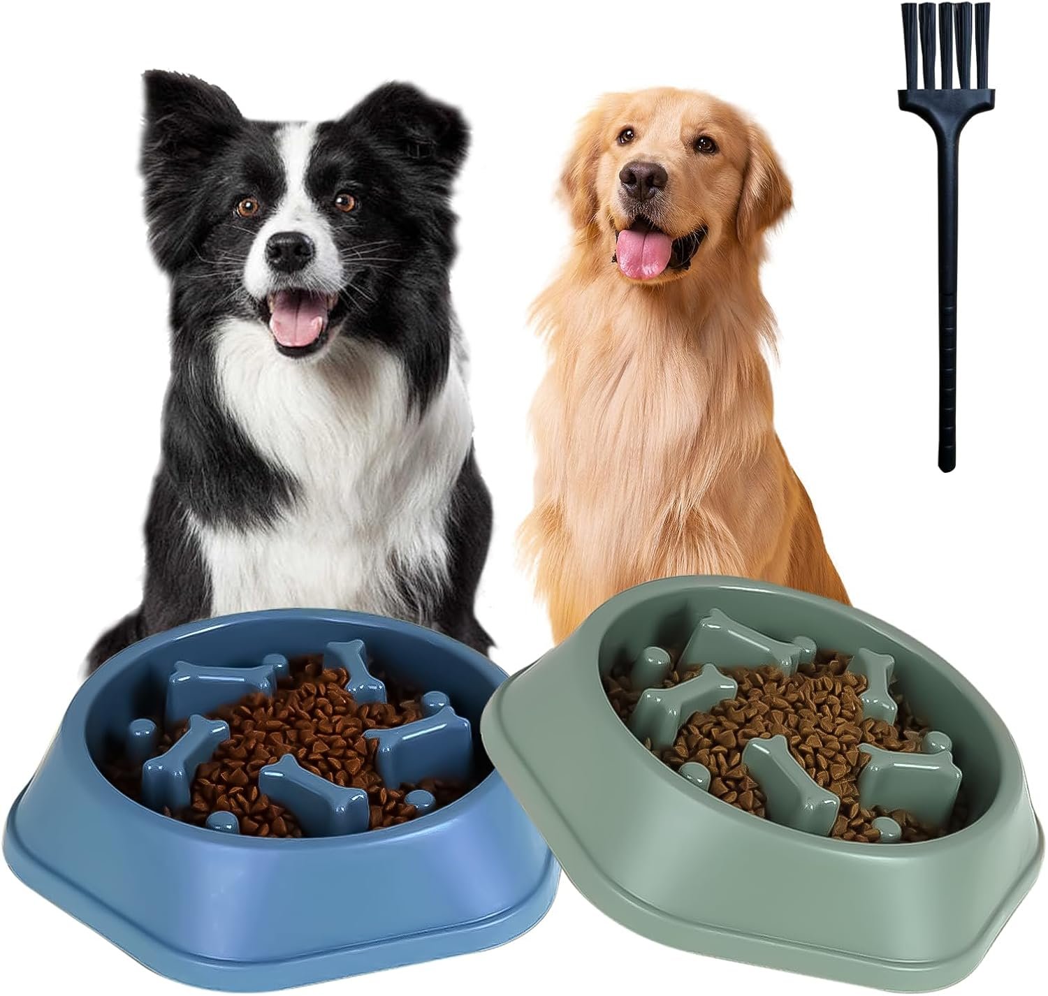 🐶【Slow Feeder Dog Bowl】: Package Includes 2 pcs slow food dog bowls + 1 pcs dog bowl cleaning brush.