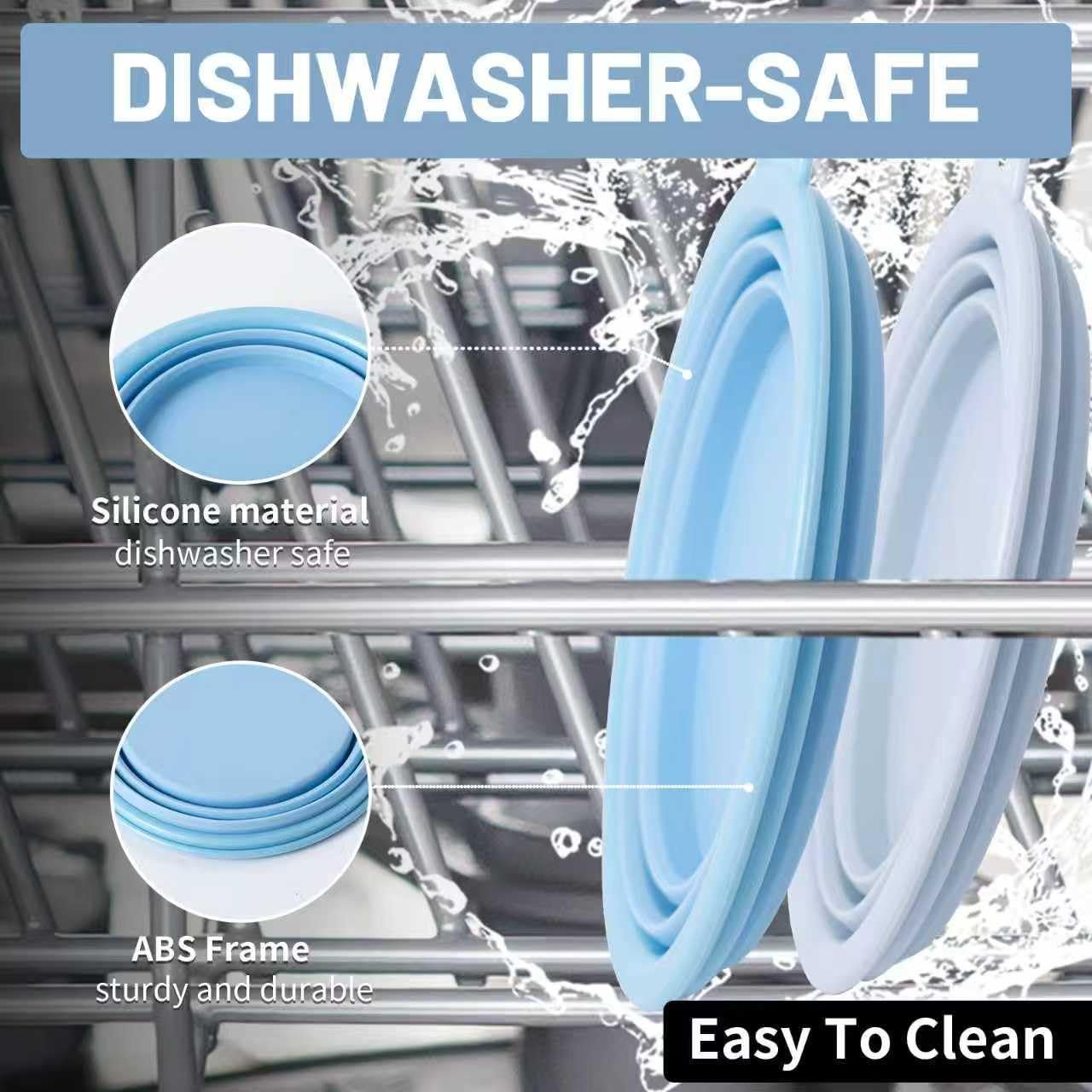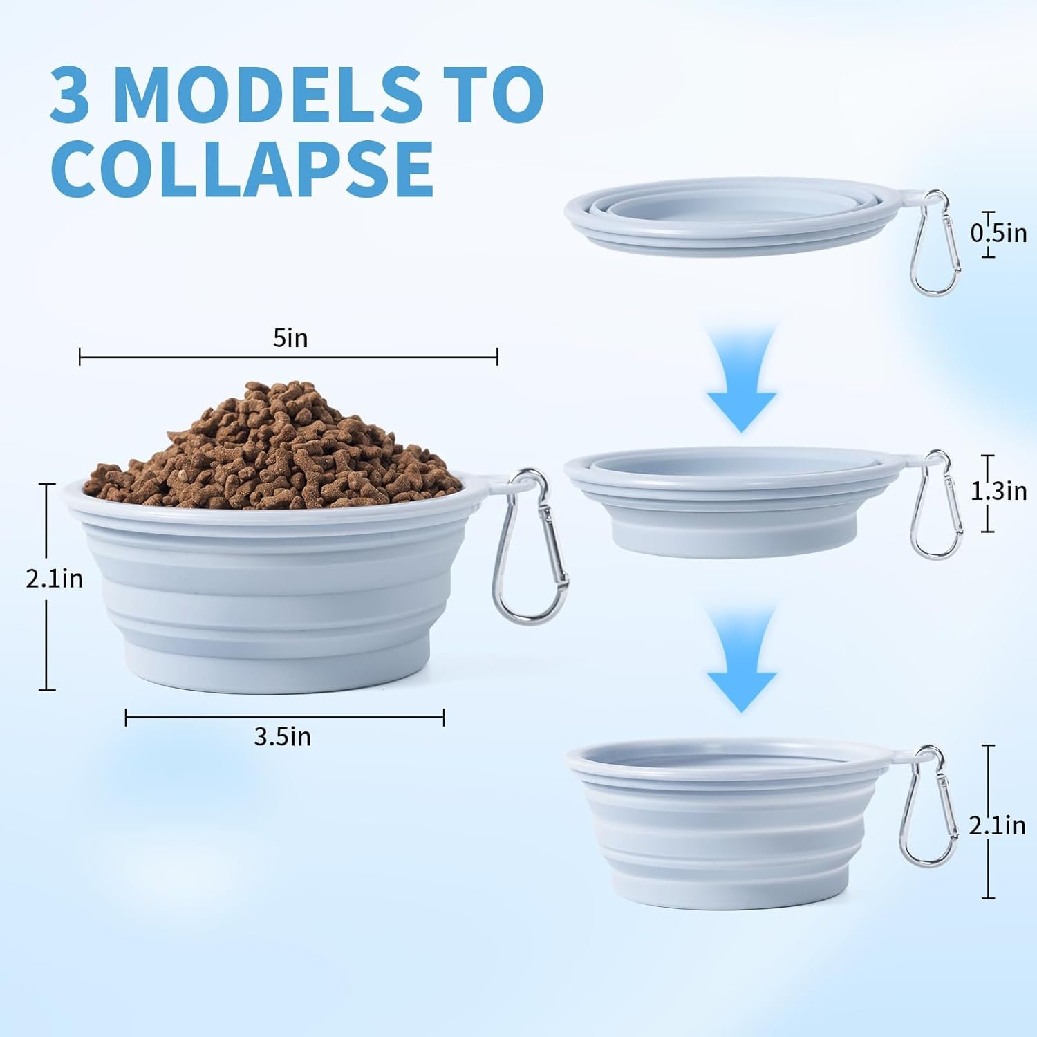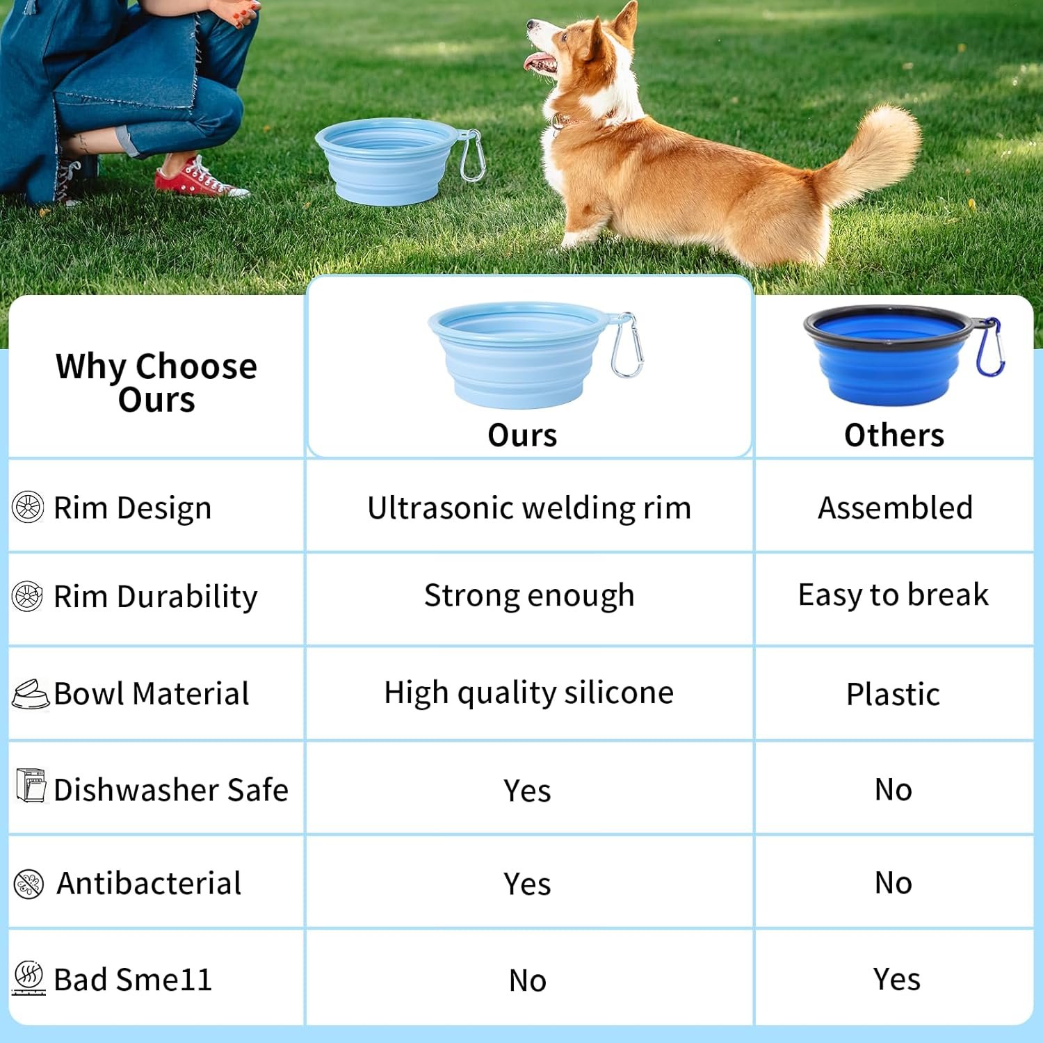 【High Quality】:One-piece molded rim collapsible dog bowl employs ultrasonic welding technology to seamlessly integrate the flexible bowl body with the rigid rim, achieving a secure bond between the bowl and frame. This design ensures the collapsible dog bowl is sturdy, eliminating concerns about chipping at the edges.