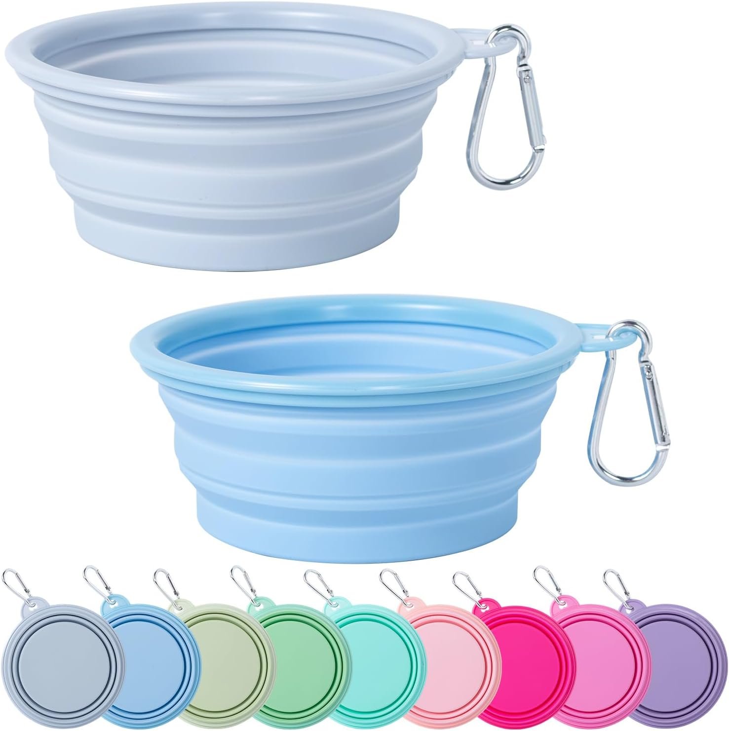 SLSON Collapsible Dog Bowl, 2 Pack Macaron Color Foldable Travel Dog Feeder Bowl Portable Silicone Pet Food Water Dish for Dogs Cats Camping Hiking (Macaron Blue and Light Grey)