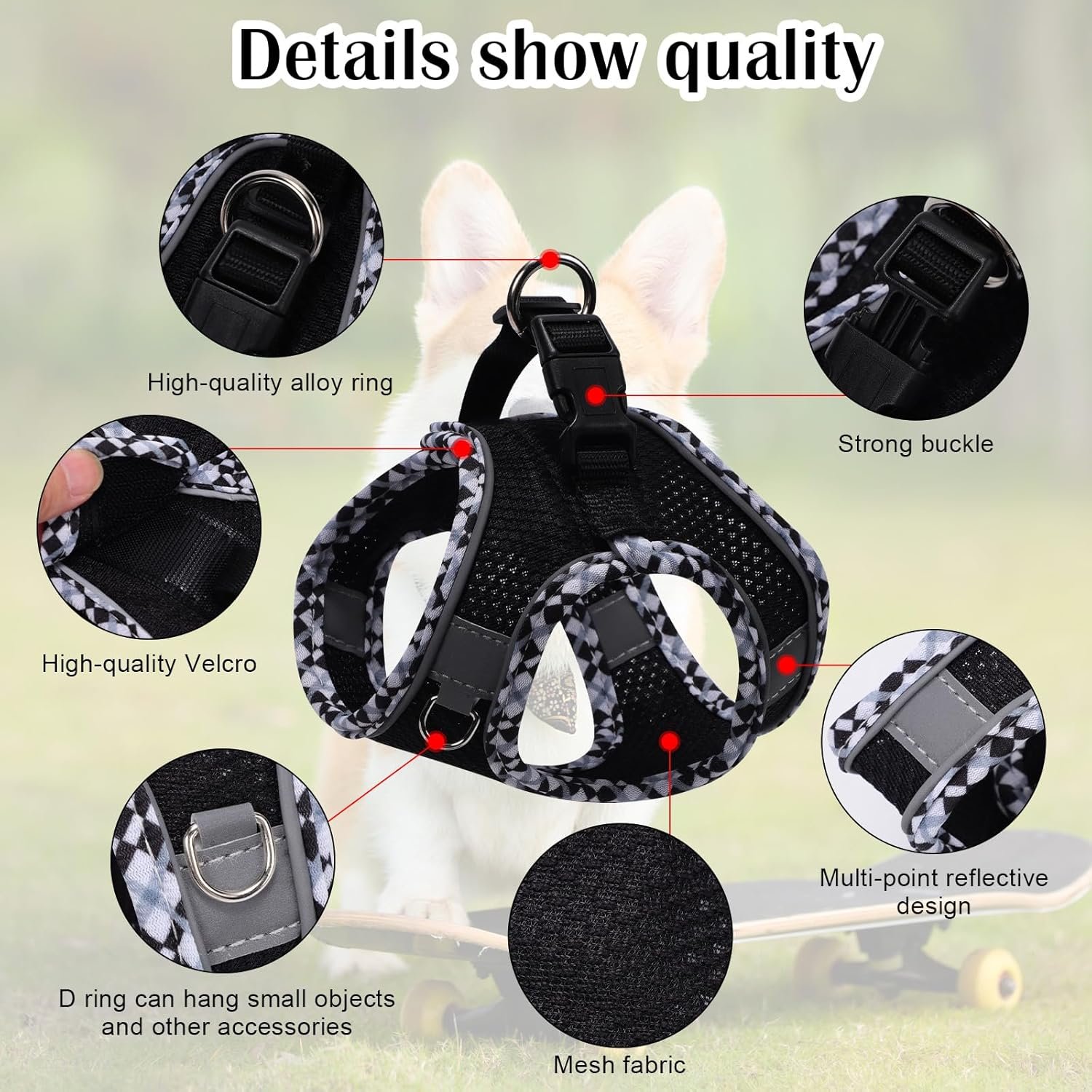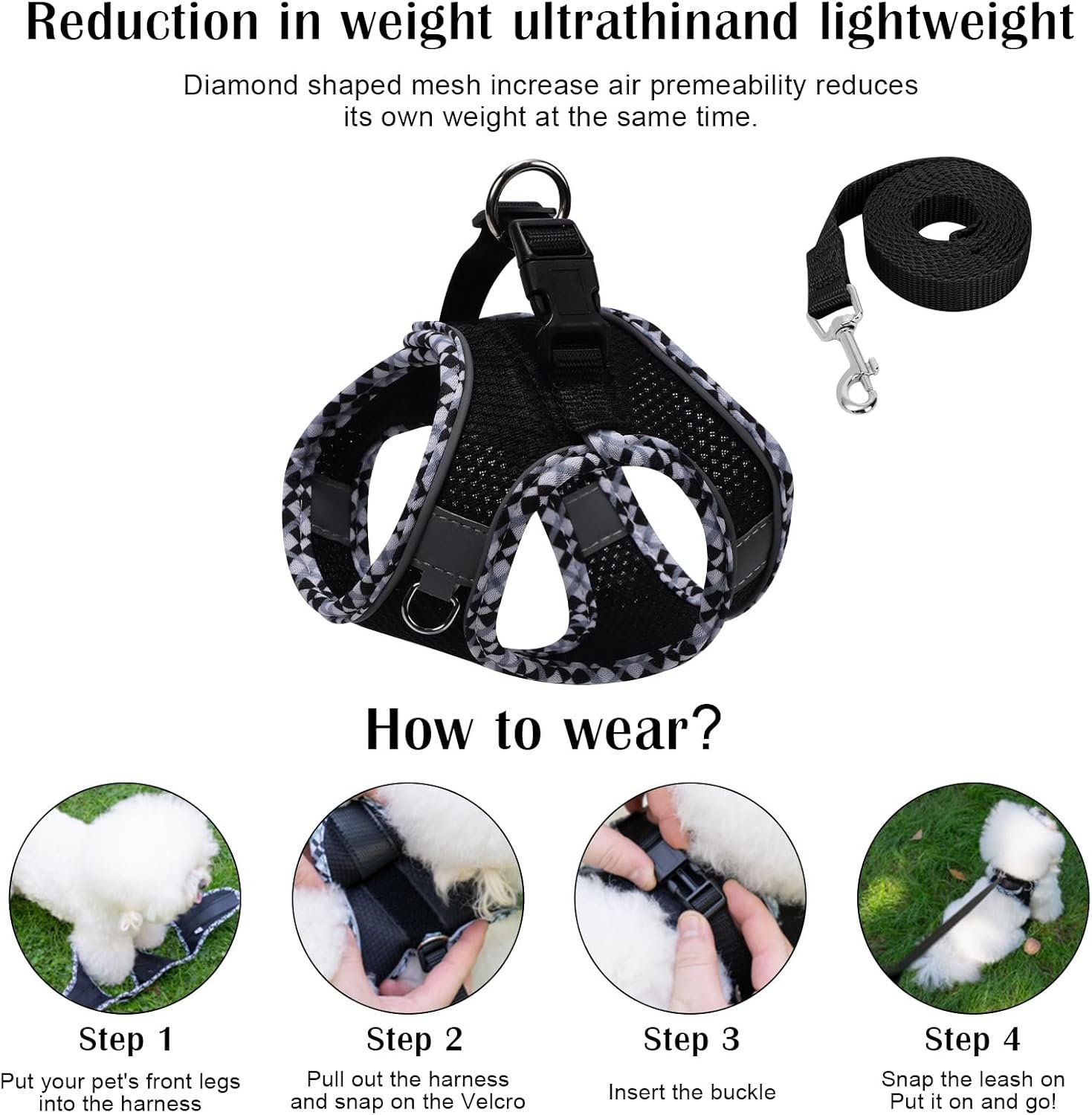Breathable & Lightweight Mesh Vest Harness: Made of soft knitted mesh, our small dog harness is breathable and lightweight, keeping your pets cool and comfortable during summer walks.