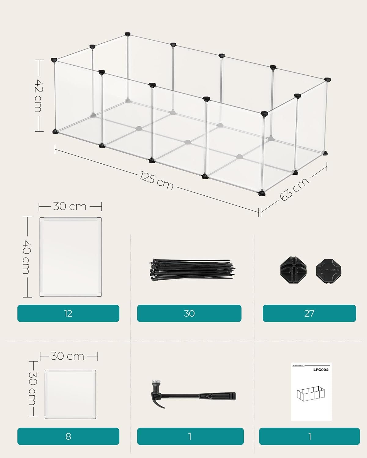 Be the first to review “SONGMICS 20 Panels Pet Playpen with Floor, Small Animal Playpen, Pet Fence Indoor, DIY Plastic Enclosure for Guinea Pigs, Bunny, Hamsters, Hedgehogs, 49.2 x 24.8 x 16.5 Inches, White ULPC001W01”