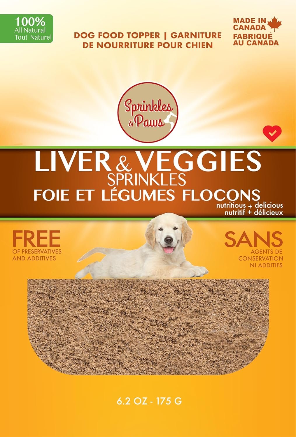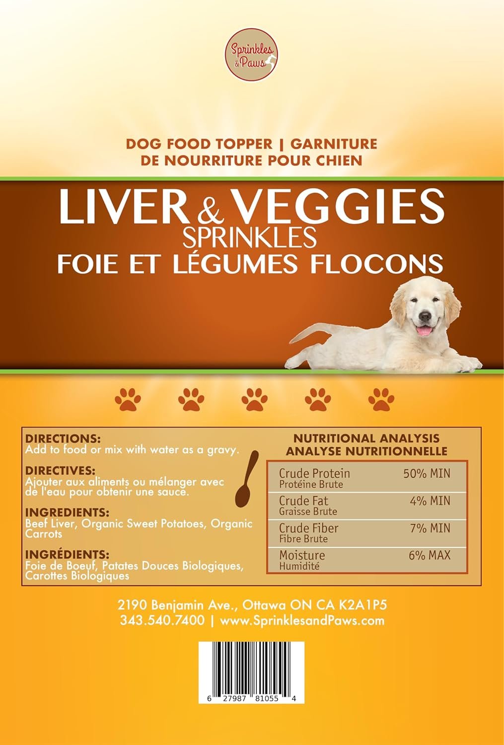 Sprinkles & Paws Liver and Veggies Dog Food Topper | Made in Canada in Healthy Powder Form | Beef Liver Powder for Dogs | Helps with Eating, Add to Food as Meal Mixer or Treat