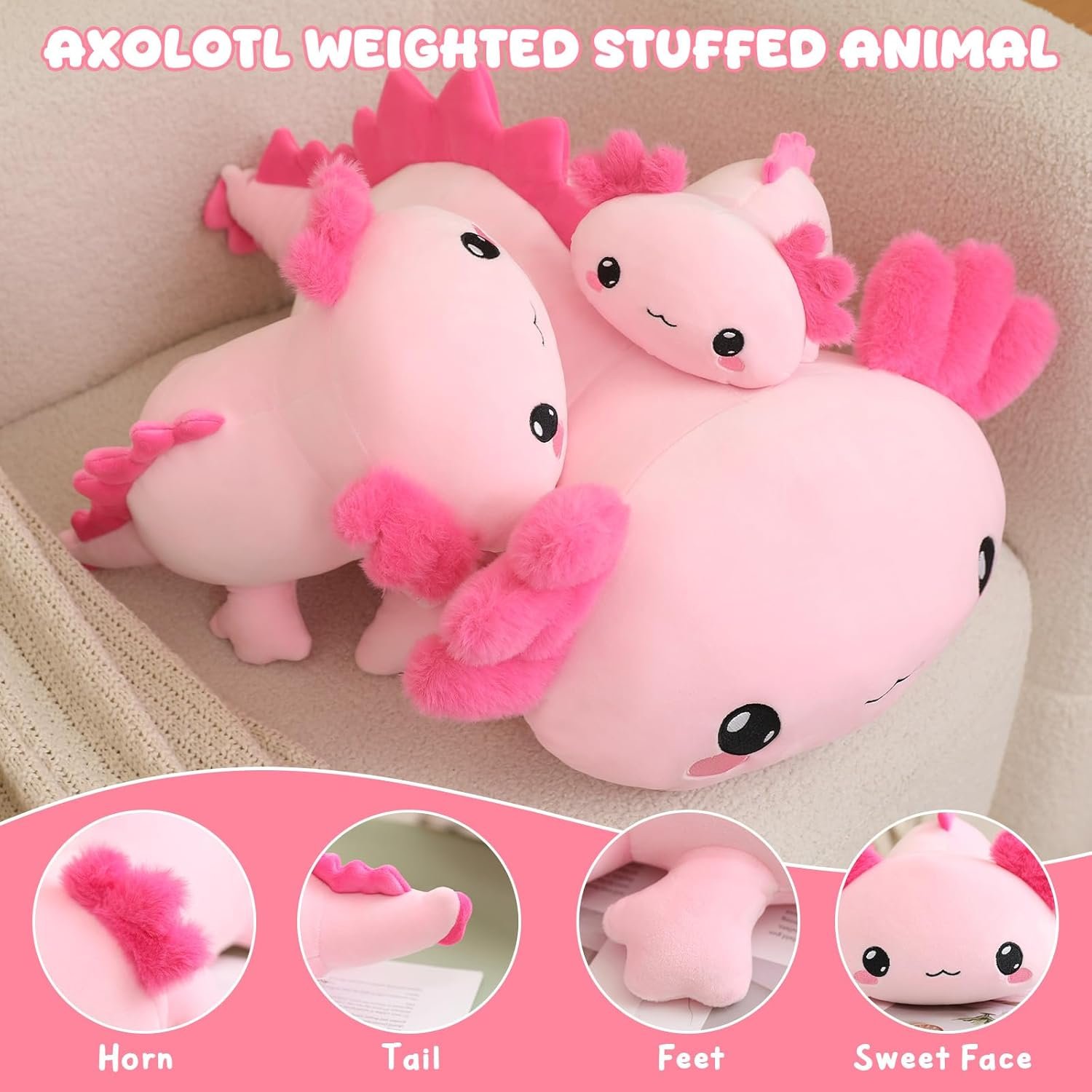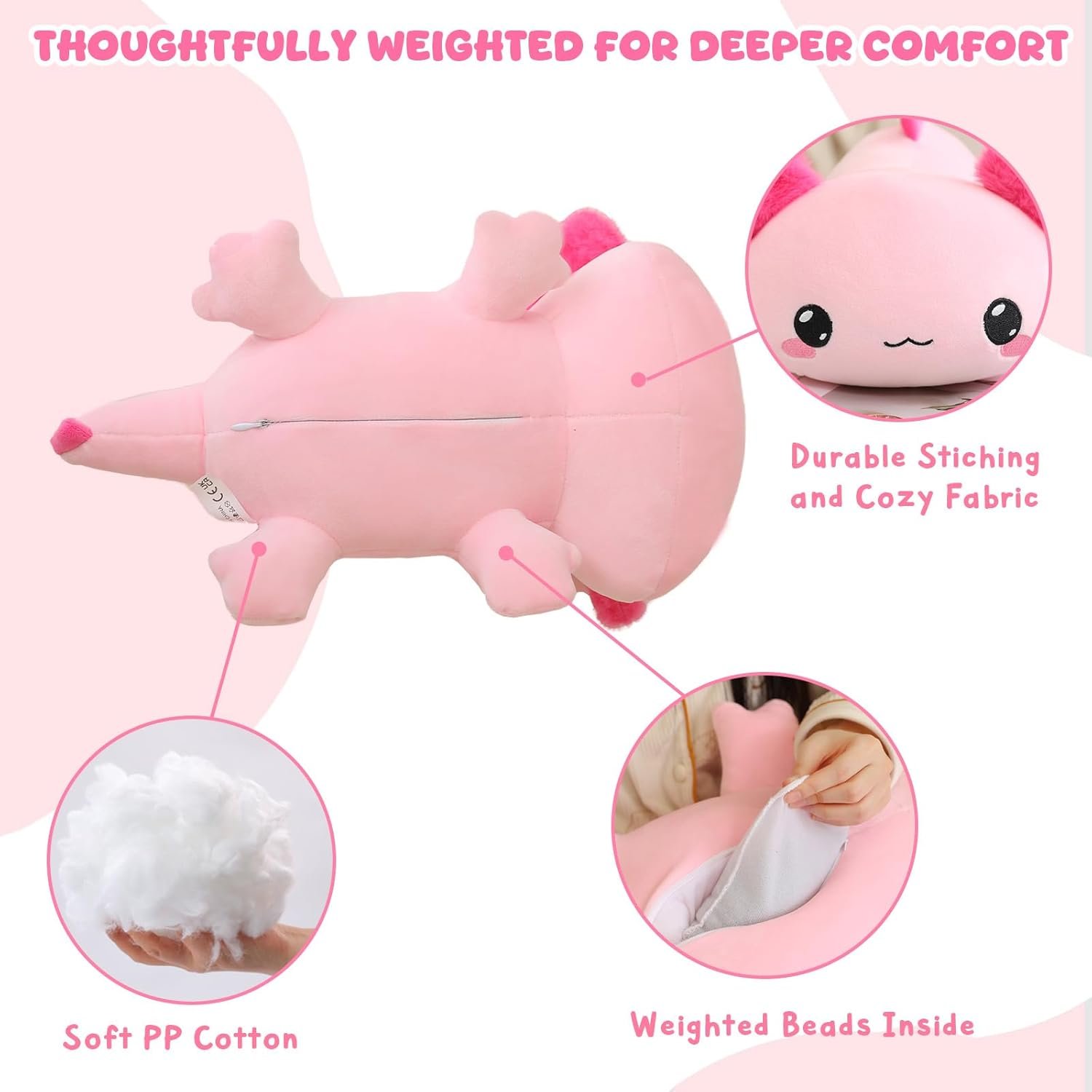 Premium Material: The weighted axolotl stuffed animal is made of cotton and plush, providing a comfortable and enjoyable experience.