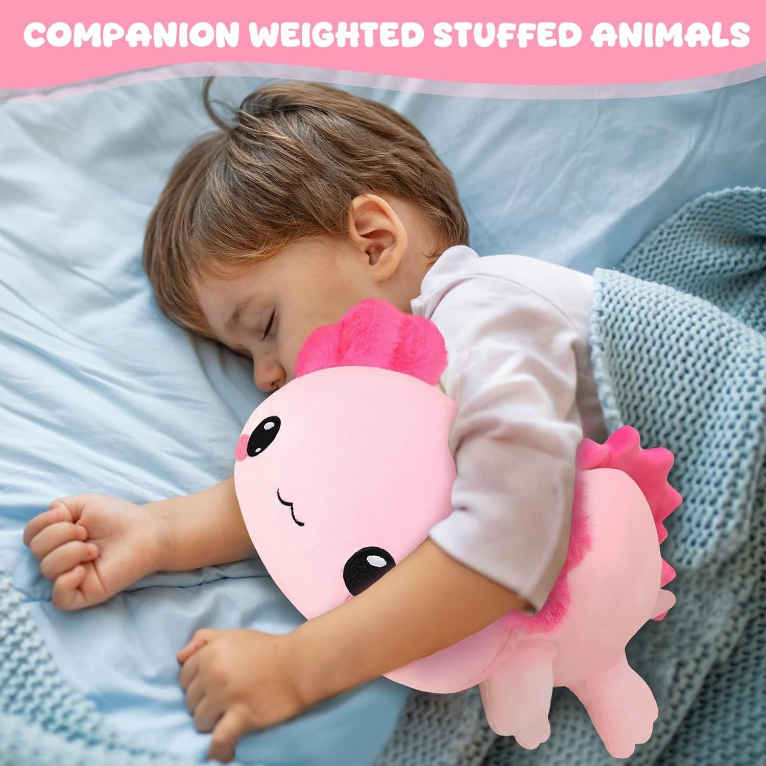 SQEQE Weighted Axolotl Stuffed Animals, Weighted Pink Axolotl Plush, Cute Plushies Toy Gift for Kids Adults (9.8 Inch, 0.8 Lbs)