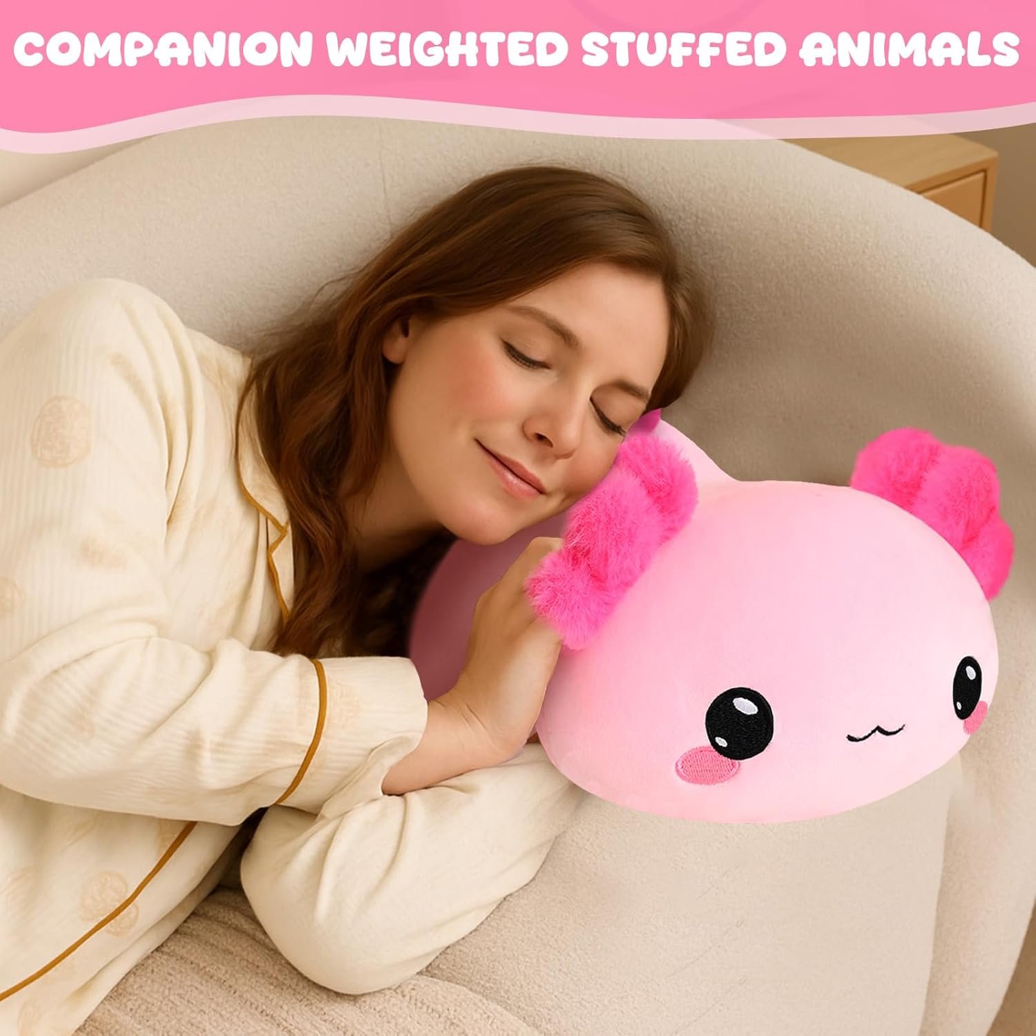 Comfortable Companion: Cute weighted axolotl stuffed animals that unfold into fuzzy pillows for sleeping, reading, watching television, studying, and sleepy nap time. You can also put it on the sofa, in a car, in a bedroom, in a children’s room, etc.