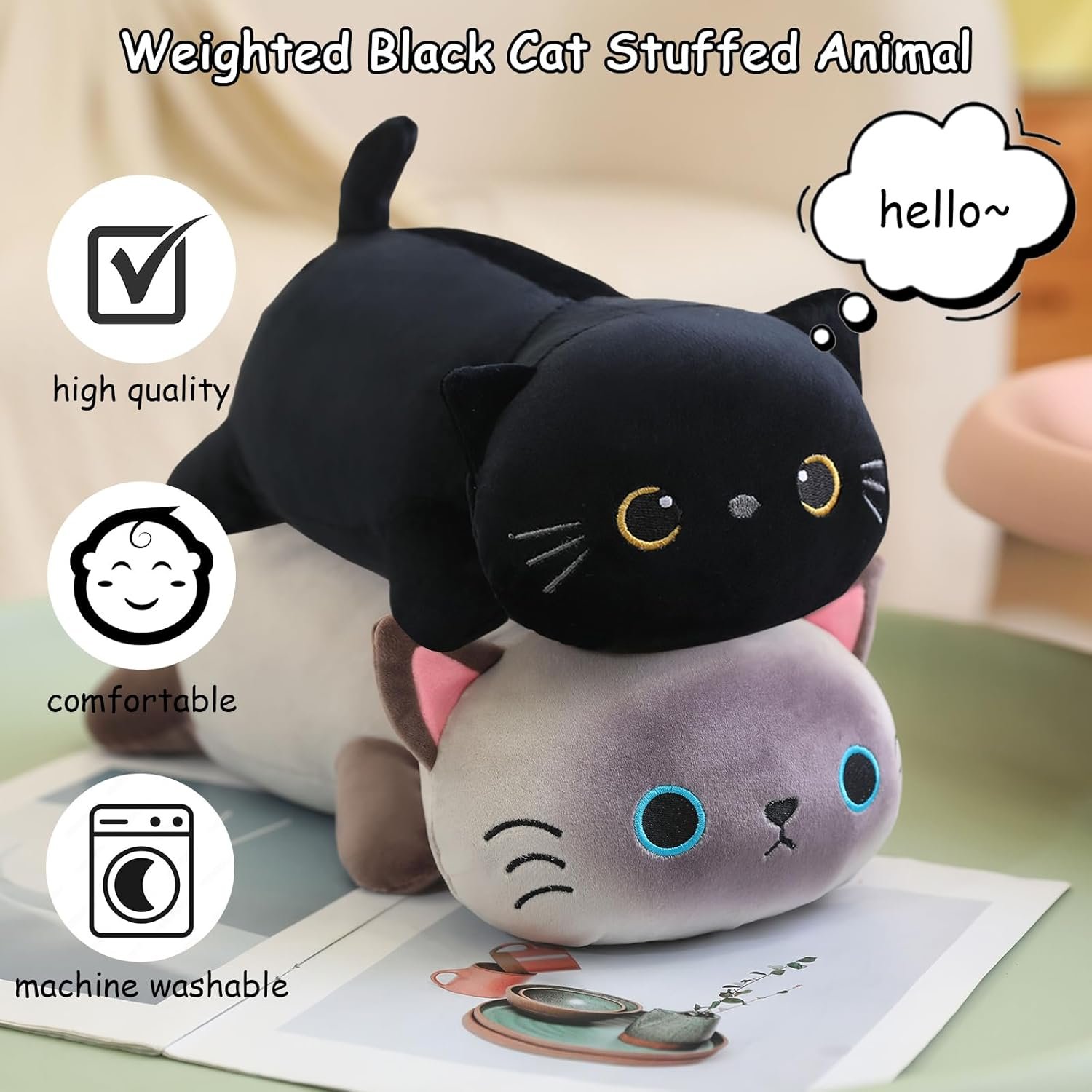 【Safe Material】Black cat weighted stuffed animal is made of cotton and plush materials, providing a comfortable and enjoyable experience. Soft plush PP cotton match with weighted beads on the bottom, this is real weighted black cat plush.
