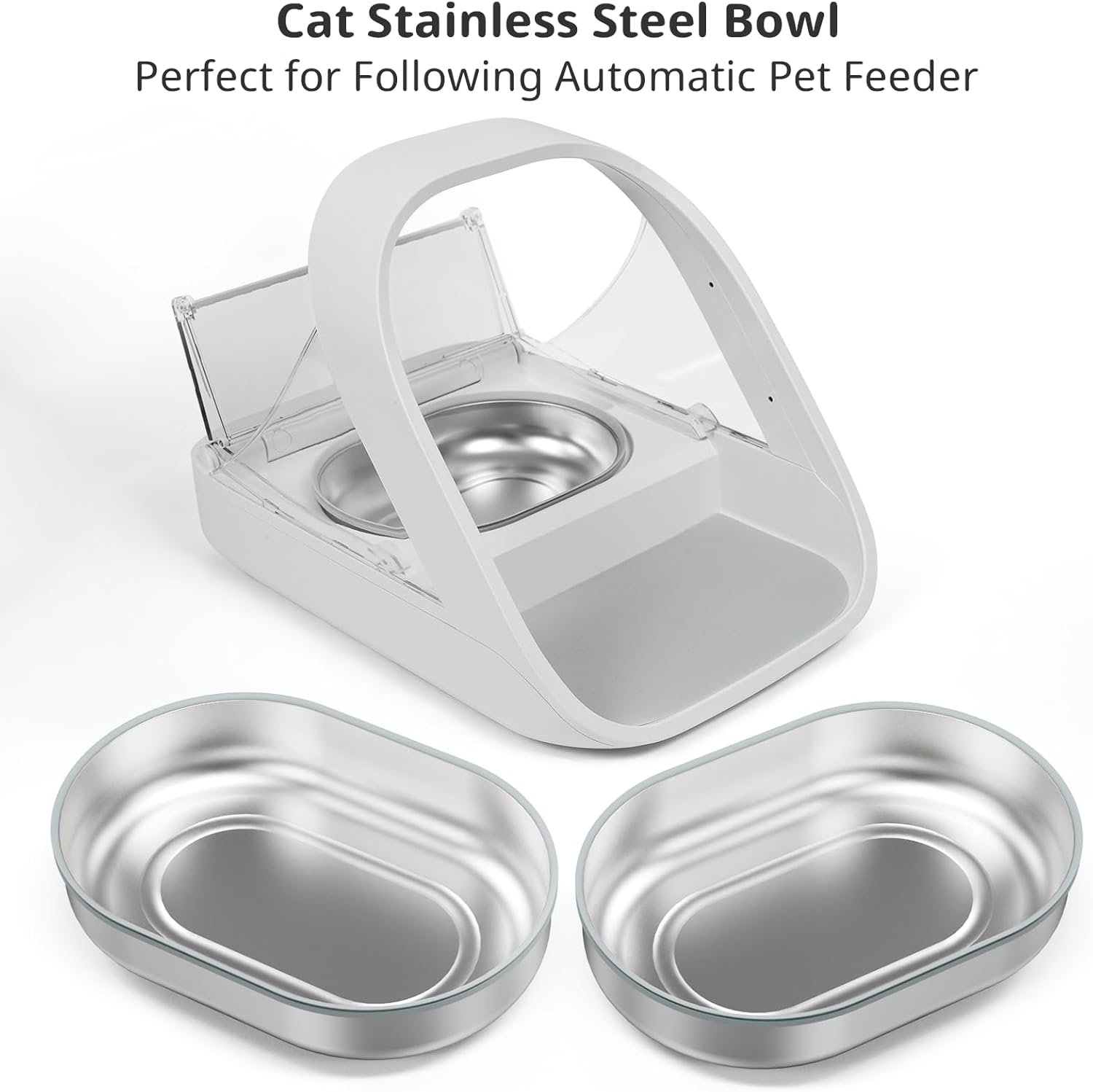 Stainless Steel Bowl and Mat Set for Automatic Microchip Cat Pet Feeder, Sealing Ring Design for Keeping Food Fresh and Reducing Odor, SUS 304, Easy to Clean, 2+1 Set