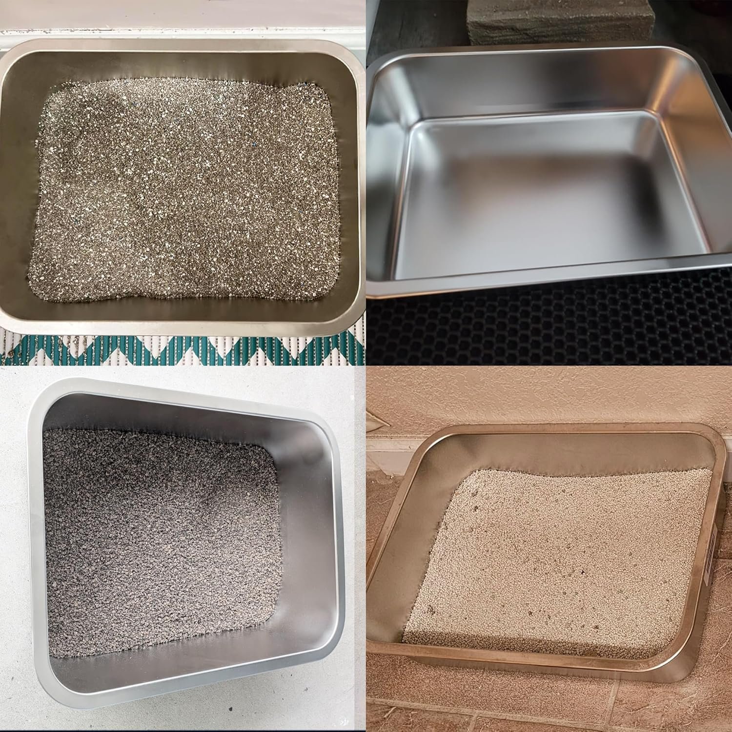 Stainless Steel Construction: Heavy-duty rust-resistant material withstands daily use; Smooth rolled edges with burr-free construction ensures pet safety; This metal litter pan scratch-resistant surface maintains pristine appearance; Non-porous surface prevents odors