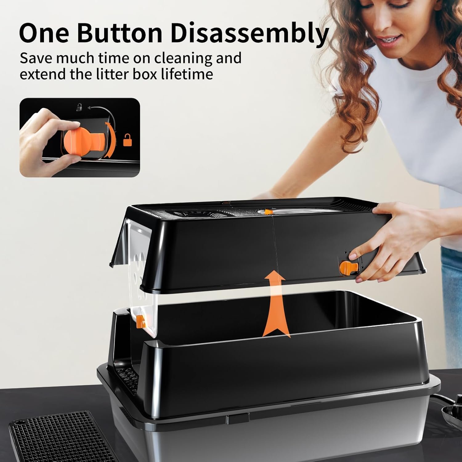 【Eosarcu Personalized Design】Our xl cat litter boxes are fueled by our affection for pets and meticulous attention to detail. we upgraded to a switch design for enhancing the experience, which just need one-button disassembly instead of frequently attach and remove the latches, made scooping and cleaning effortless and extend the litter box lifetime. also it can keep the cat a sense of security.