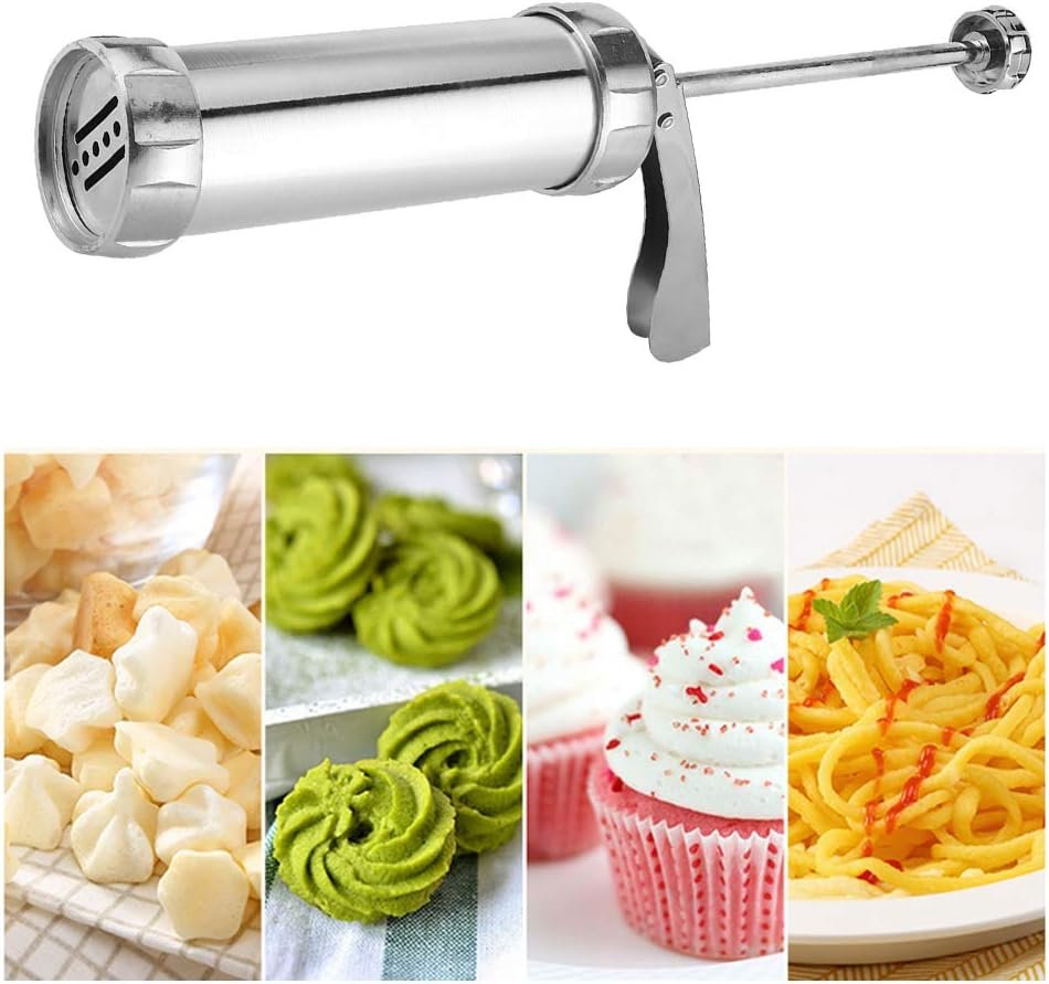 Stainless Steel Cookie Press Kit with 20 Molds & 4 Icing Nozzles – Easy to Use DIY Biscuit Maker for Decorating Cookies, Cupcakes, and Baking Fun for Beginners & Professionals