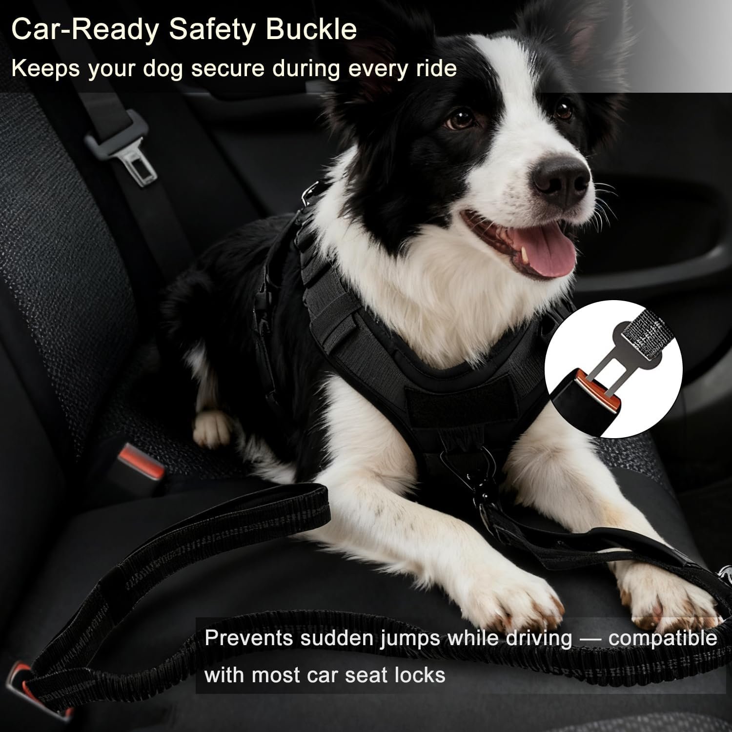 Reflective Safety & Car Restraint: Double-sided reflective stitching enhances visibility during early mornings, evenings, or low-light conditions. Doubles as a car seatbelt clip to safely secure large dogs during travel