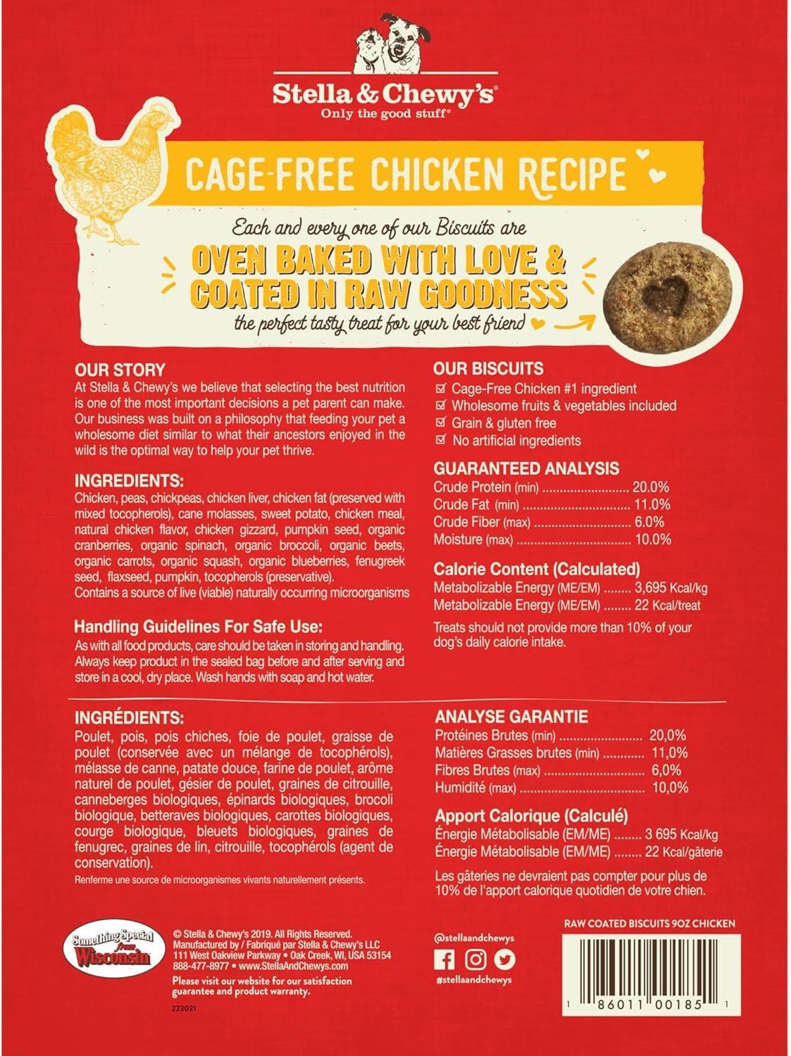 Stella & Chewy’s Freeze-Dried Raw Coated Dog Biscuits – Cage-Free Chicken Recipe – Protein Rich, Grain Free Dog & Puppy Treat – Great Snack for Training & Rewarding – 254g Bag