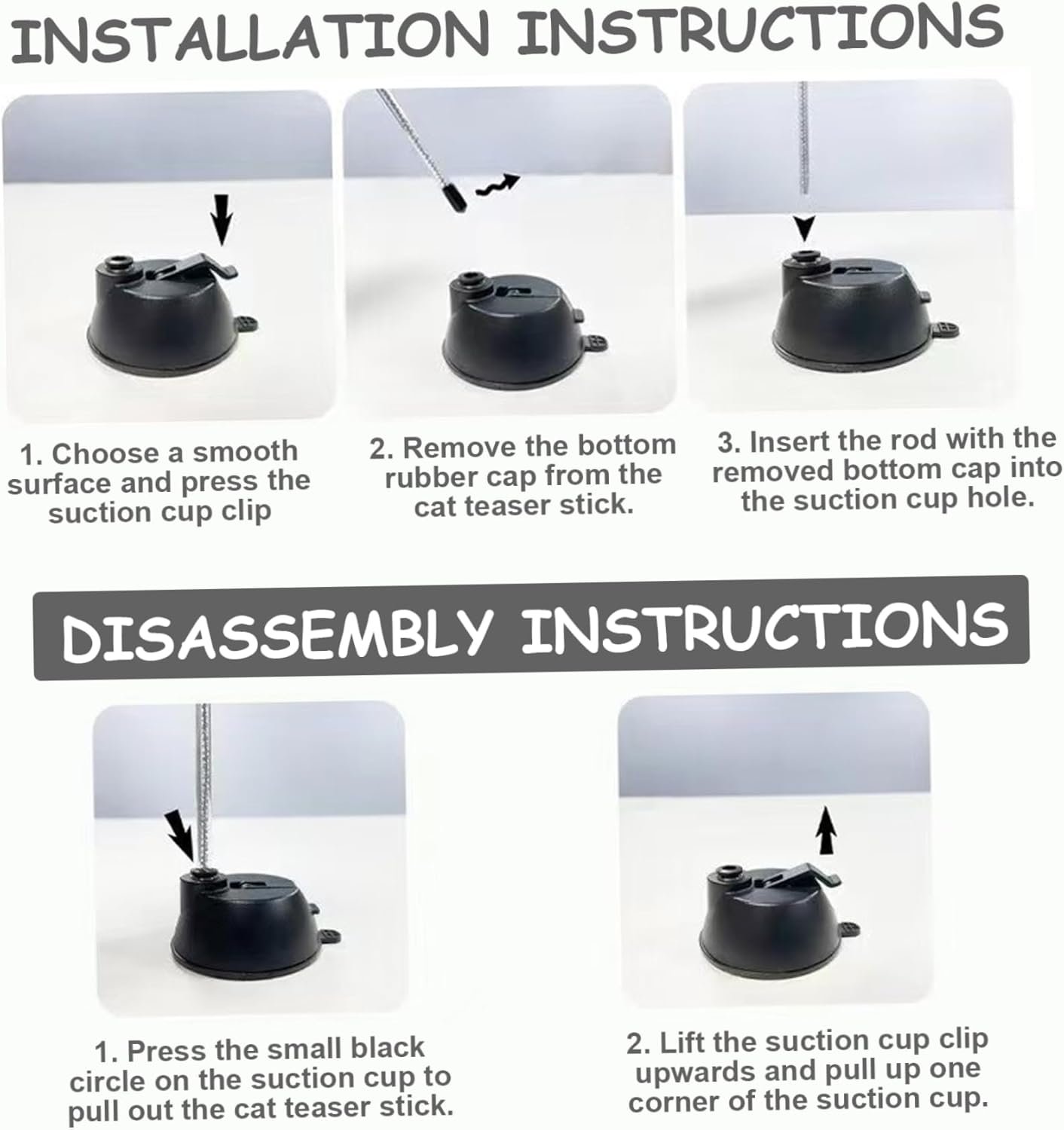 Powerful Suction Cup: Securely attaches to smooth surfaces like glass, tile, or polished wood for stable, hands-free cat play, preventing tipping and allowing solo entertainment.Suction Cup Cat Toy Cat Wand