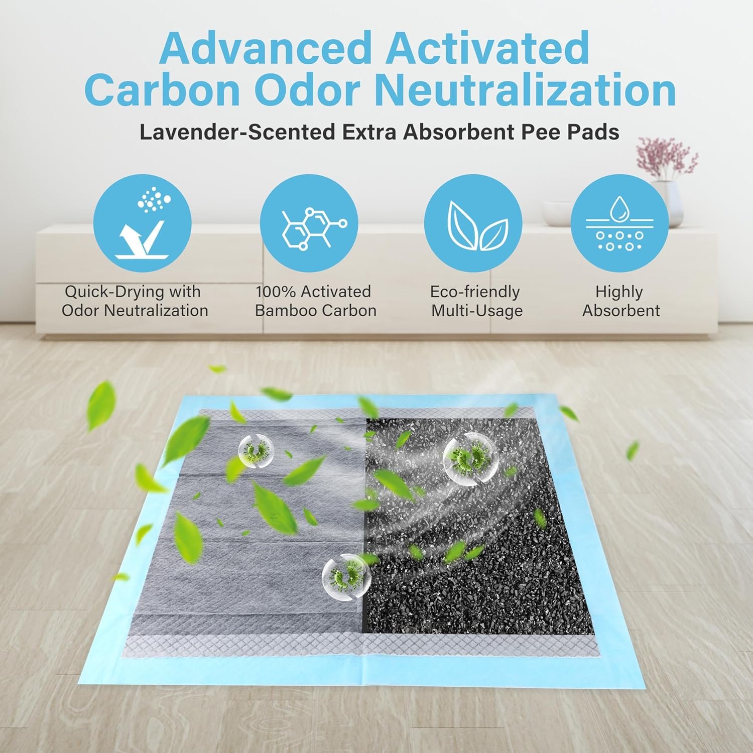 [BUILT-IN ATTRACTANT] With a built-in attractant that helps direct your dog to the pad, which could help you achieve a successful housebreaking. This training pad not only can absorb odor and pet urine, but also help protect your expensive hardwood and carpet.