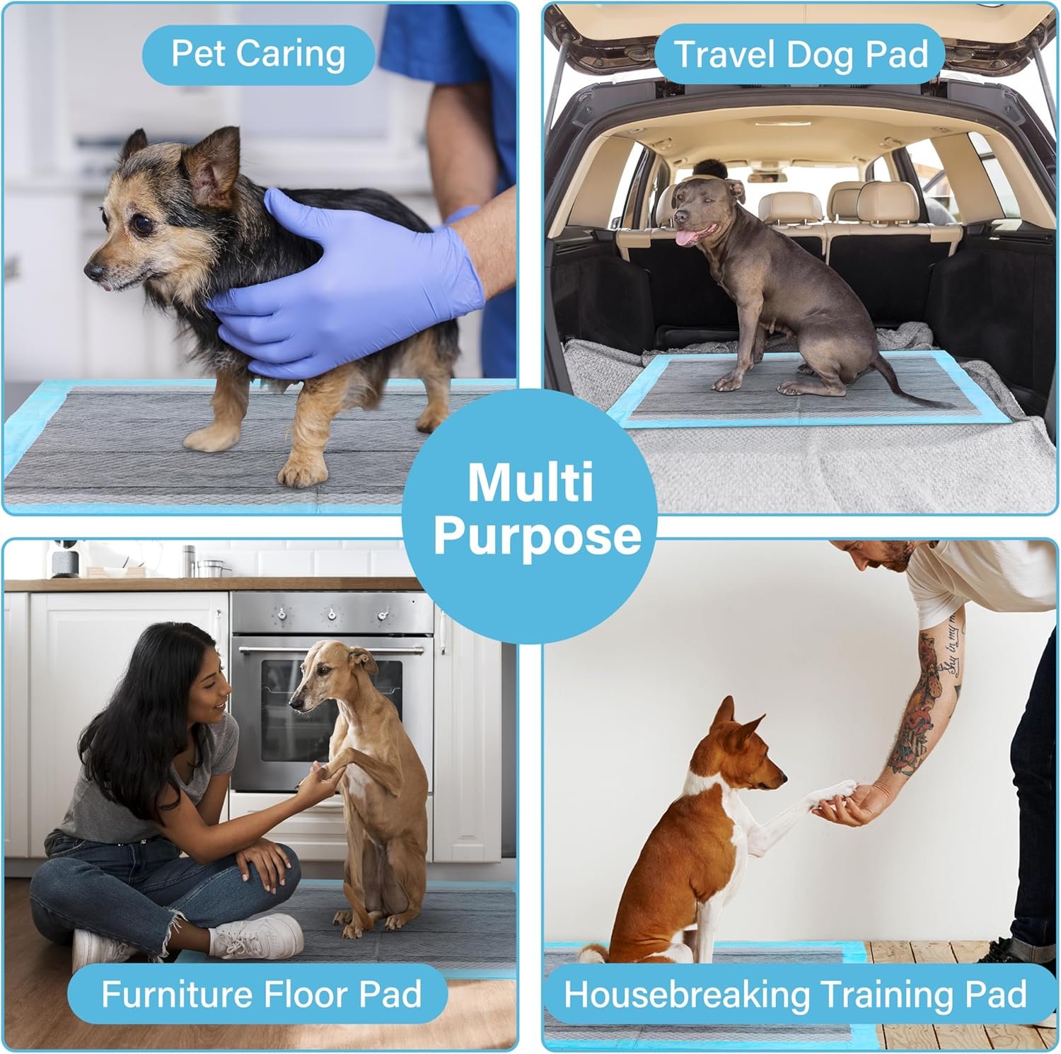[QUICK ABSORBENT & LEAK PROOF] With a super-absorbent core that can lock in moisture by instantly absorbing and turning liquid into gel, each training pad can hold up to 3 cups of water. This product also featured with plastic back and border to prevent any leaking.