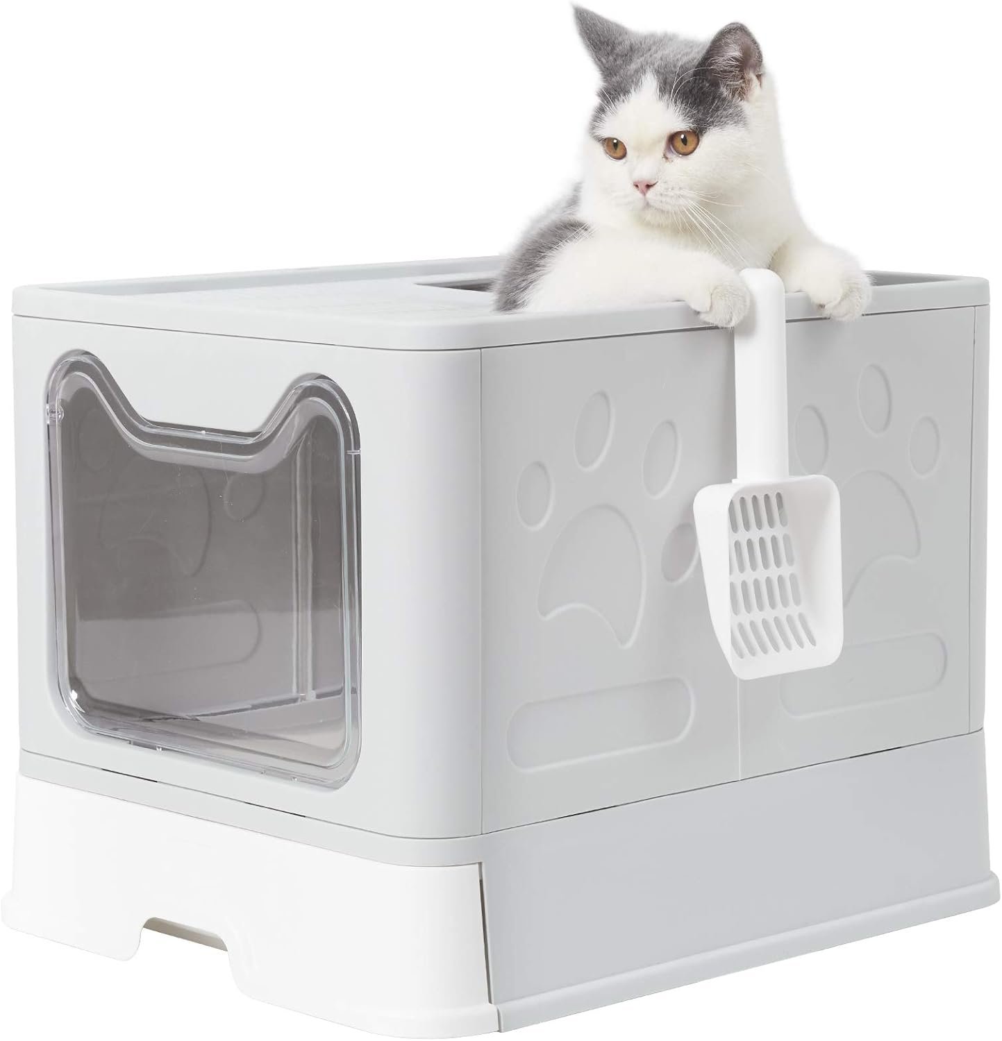 Susire Large Cat Litter Box: Kitty Top Entry Litterbox Tray with Lid – Indoor Cats Foldable Covered Toilet with Drawer – Kitten Closed Potty with Scoop,Easy to Clean
