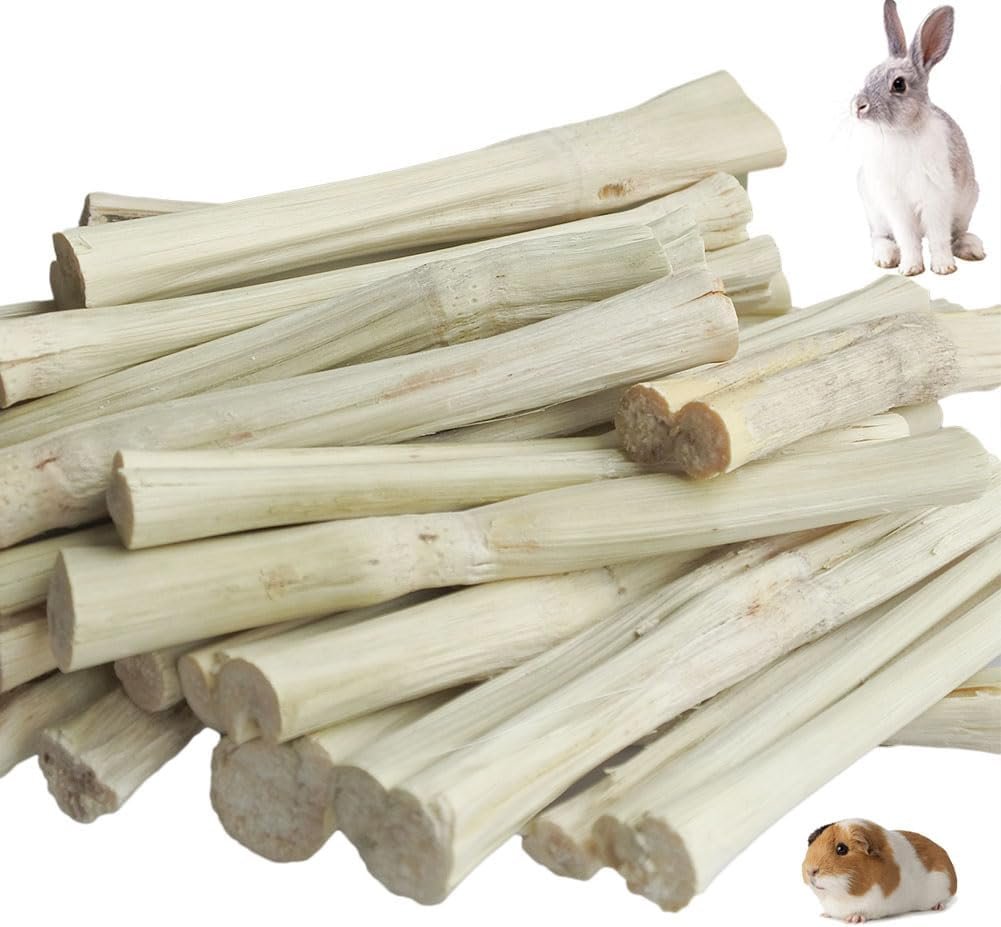 Small Animal Chew Toys; sweet bamboo chew sticks have rich fiber nutrition to improve appetite and promote digestion effectively; chew toys can also stimulate pet to develop the habit of grinding teeth better