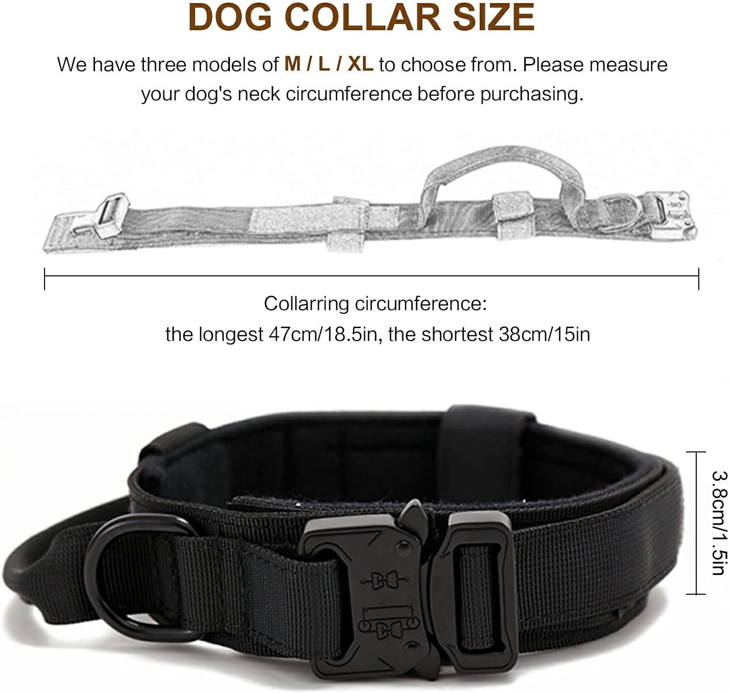 【Multifunction】 dog collar is great for dog training, patrolling, hiking, working, walking, running, and hunting. thick dog collar suitable for Medium and large dogs, such as: German Shepherd, Border Collie, Rottweiler, Great Dane, Doberman Pinscher, Golden Retriever, Husky, Labrador, Alaskan Malamute etc.