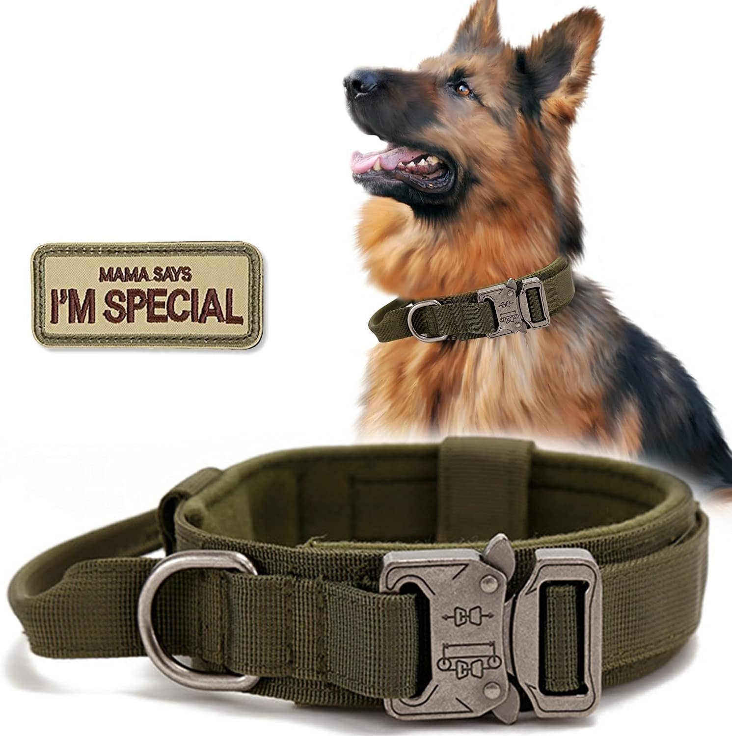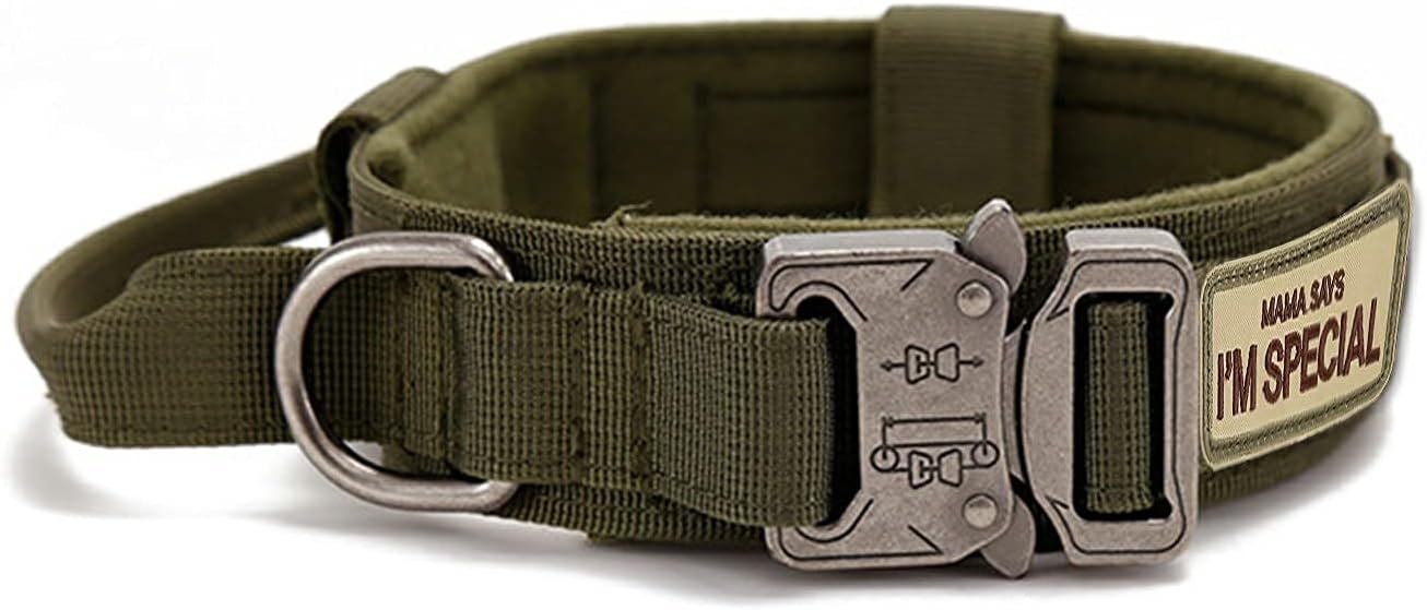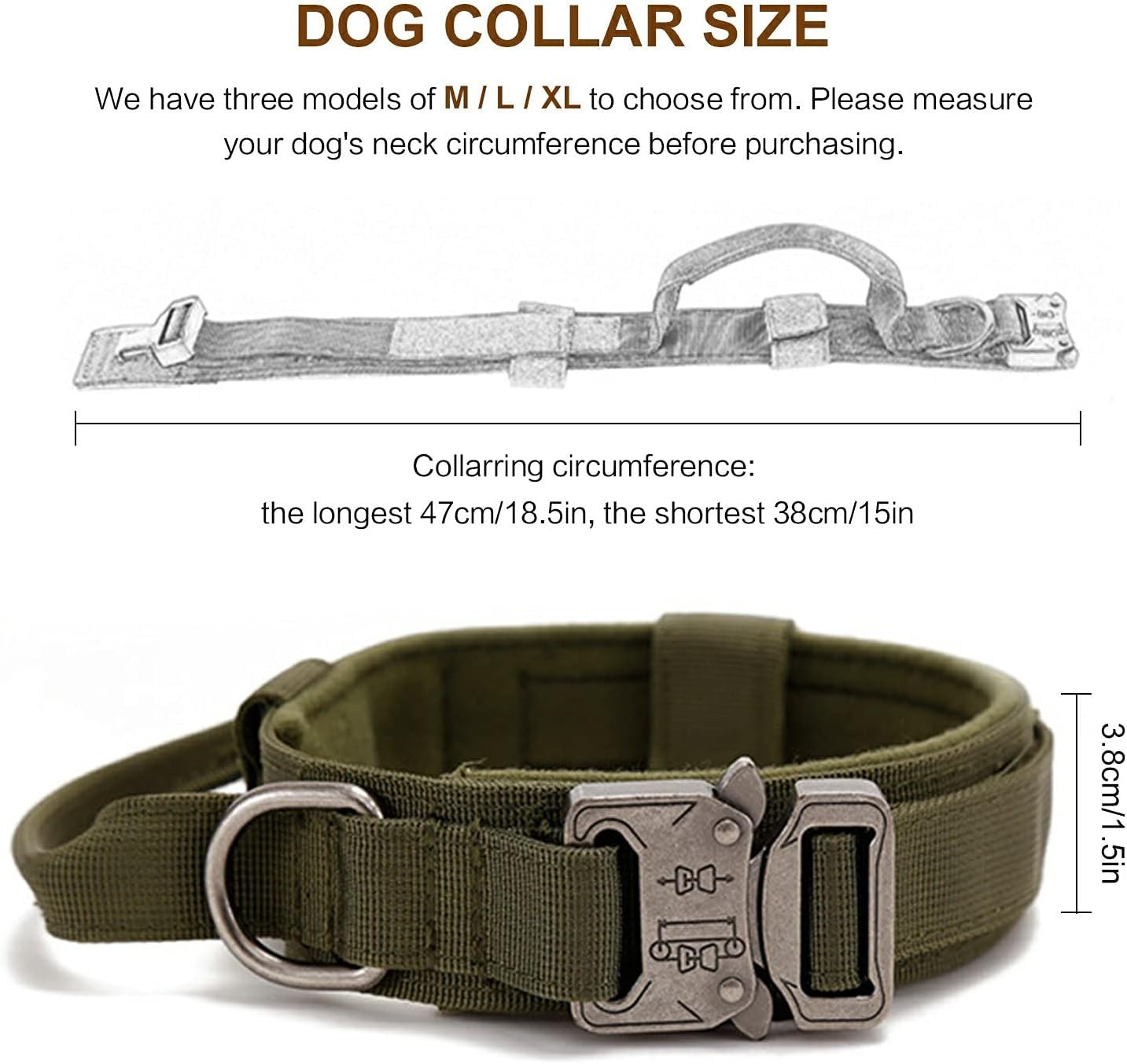 Tactical Dog Collar, Military Nylon Dog Collar Thick with Handle Dog Collars Adjustable Heavy Duty Metal Buckle for Dog Training (Green, M)