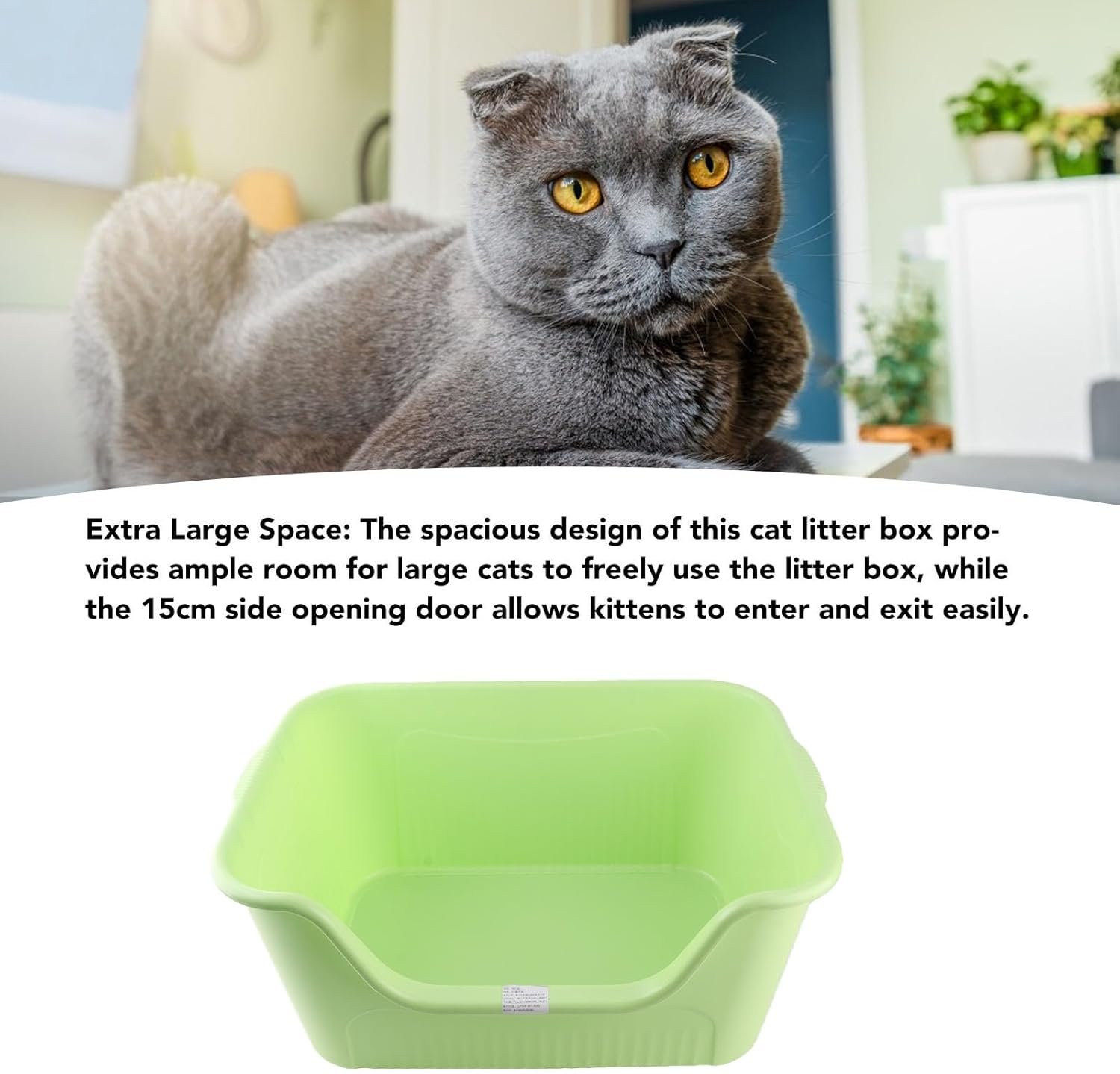 Extra Large Space: The spacious design of this cat litter box provides ample room for large cats to freely use the litter box, while the 15cm side opening door allows kittens to enter and exit easily.