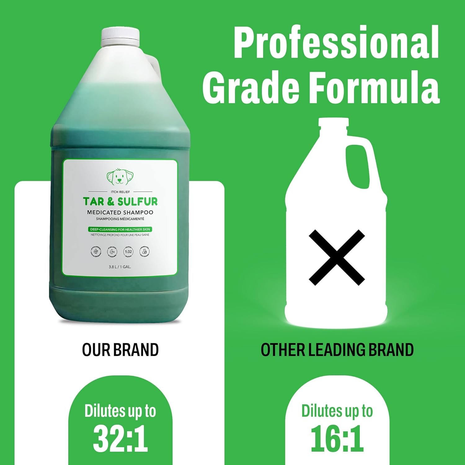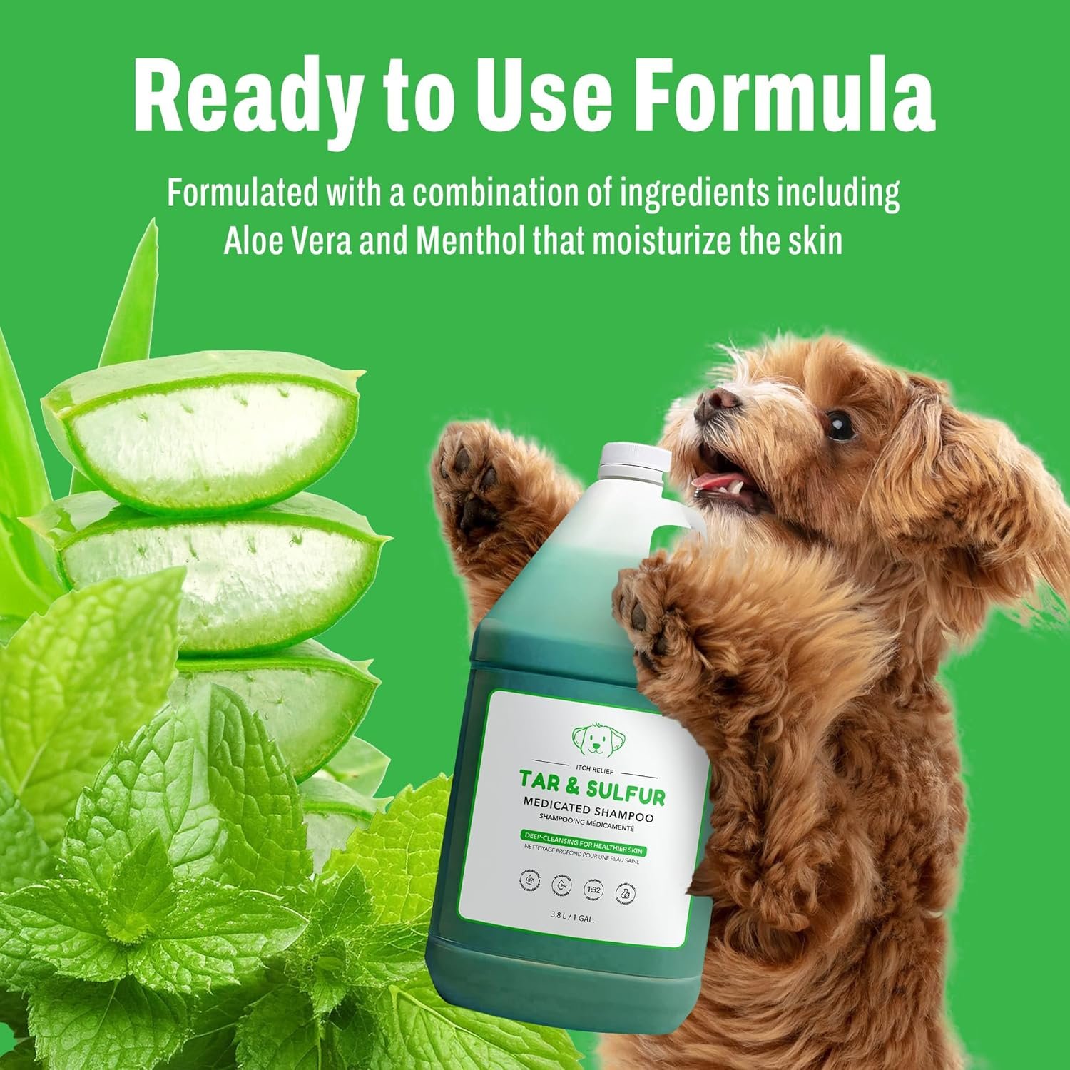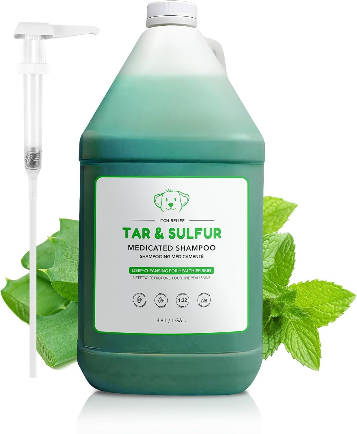 Specially Formulated Treatment: This medicated dog shampoo is enriched with tar and sulfur, making it a powerful solution for treating dog dandruff, mange, and other skin conditions, while also promoting healthy skin and a shiny coat.