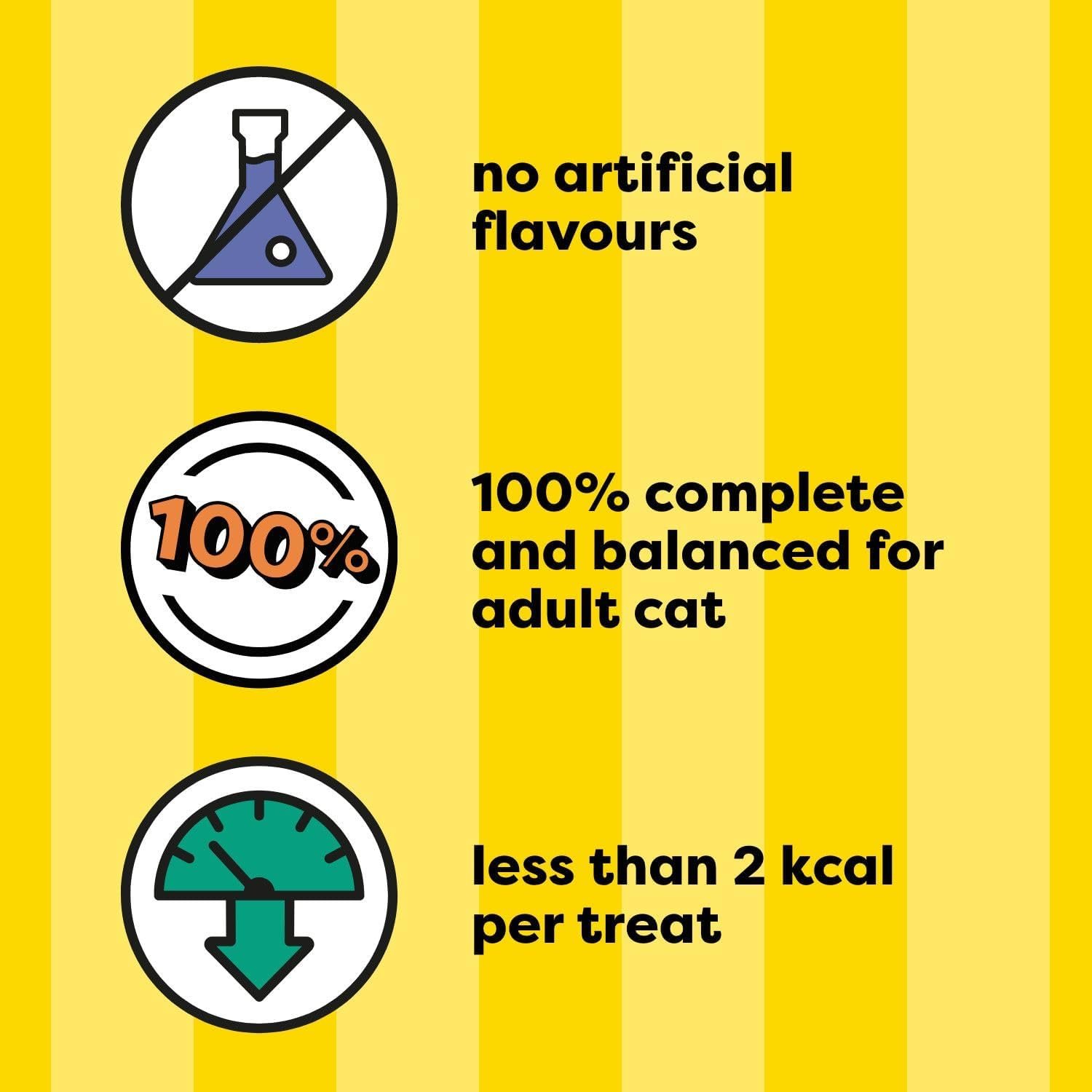 100% COMPLETE AND BALANCED For Adult Cats: Feel great about treating your phenomenal feline with a cat treat that’s 100% nutritionally complete and balanced for adult cat maintenance.