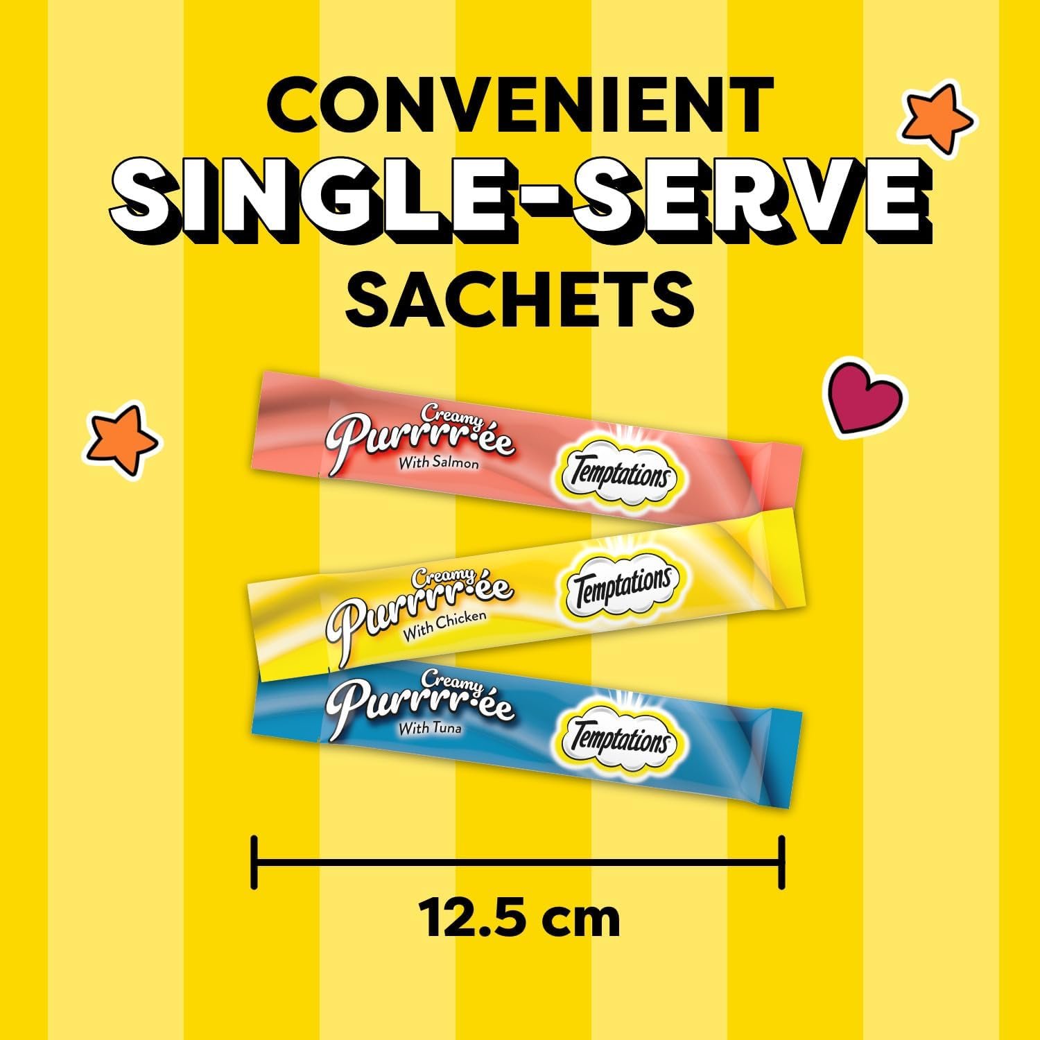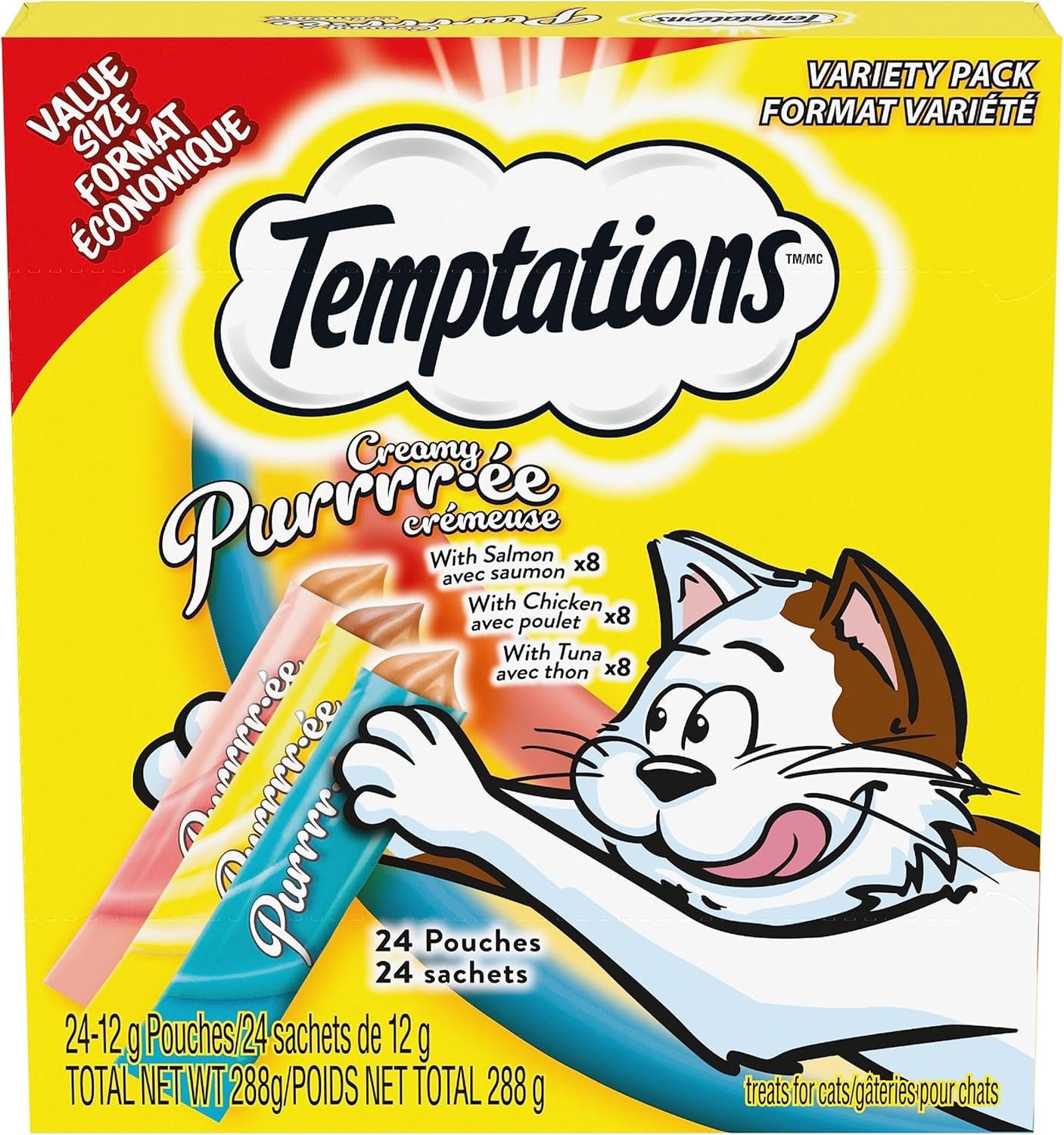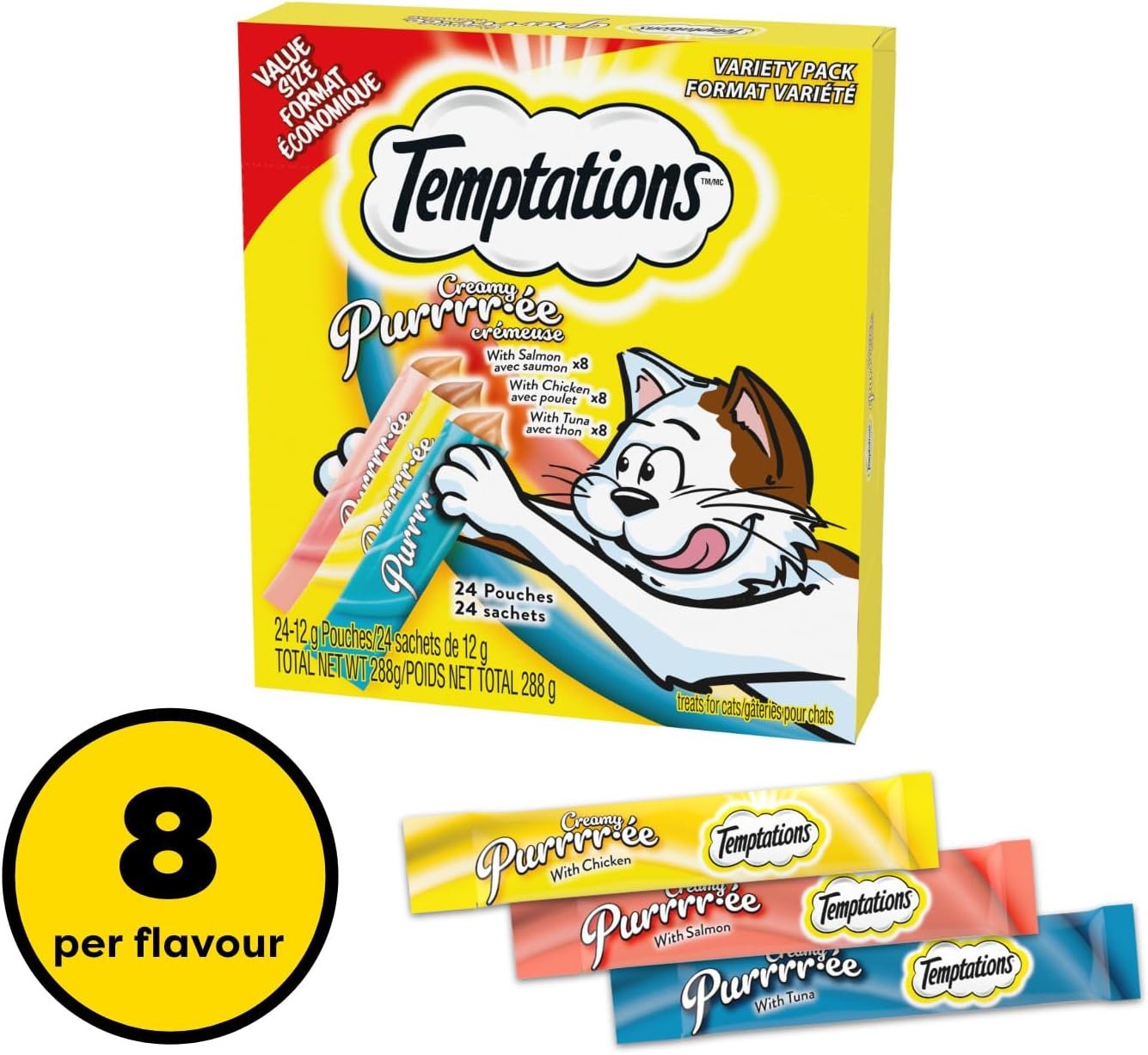 Temptations Creamy Puree Adult Lickable Cat Treats with Chicken & Salmon & Tuna Variety Pack, 24 Pouches, 288g