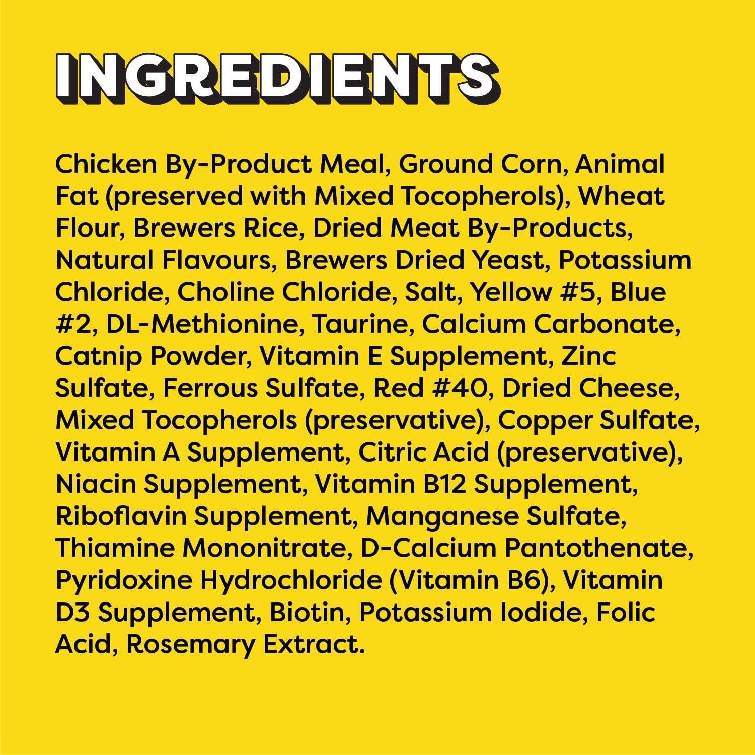 CONTAINS: One (1) 850g tub of TEMPTATIONS MixUps Cat Treats, Chicken, Catnip & Cheese Flavour