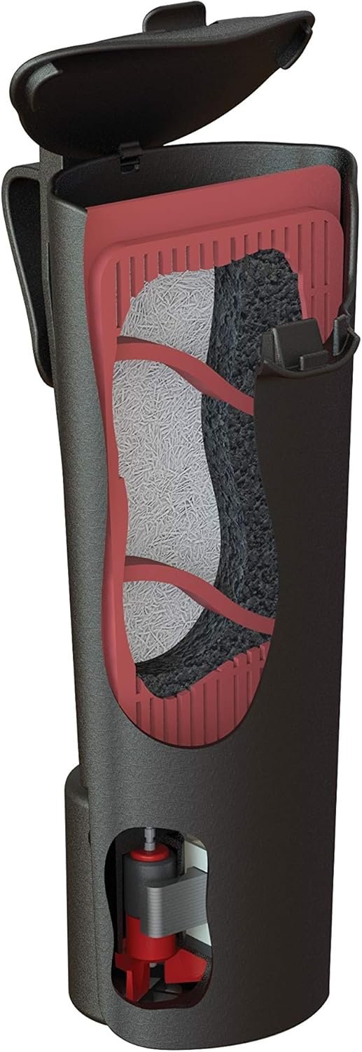 From its claim to fame as the “World’s Most Popular Fish Food” to the consumer-friendly TetraCare support, you can always trust your tank to Tetra products. Since 1995, the company’s goal has been to make aquatic pet ownership easier, and we continue that tradition with our complete lines of nutrition, water care, filtration and aquarium products for fish, reptiles and amphibians. The Tetra Whisper Internal Power Filter for 4 gallon aquariums uses small cartridges to provide two filters in one (mechanical and chemical). Cartridge floss catches debris and fish waste, while Ultra-activated carbon removes odor and discoloration. The 27 GPH pump cycles a 4-gallon aquarium more than 6 times per hour. Easily change cartridges with the hinged lid for easy access. The space-saving design is easily hidden by décor and can be adjusted to high or low water levels with the adjustable clip.