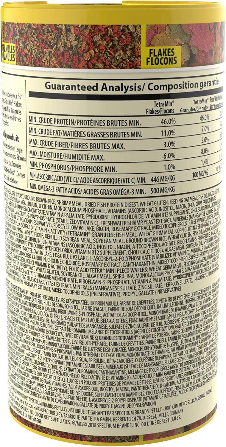 3 FOODS IN 1: Includes Tetra TetraMin Tropical Flakes, TetraMin Granules plus mini wafers, all in one can.