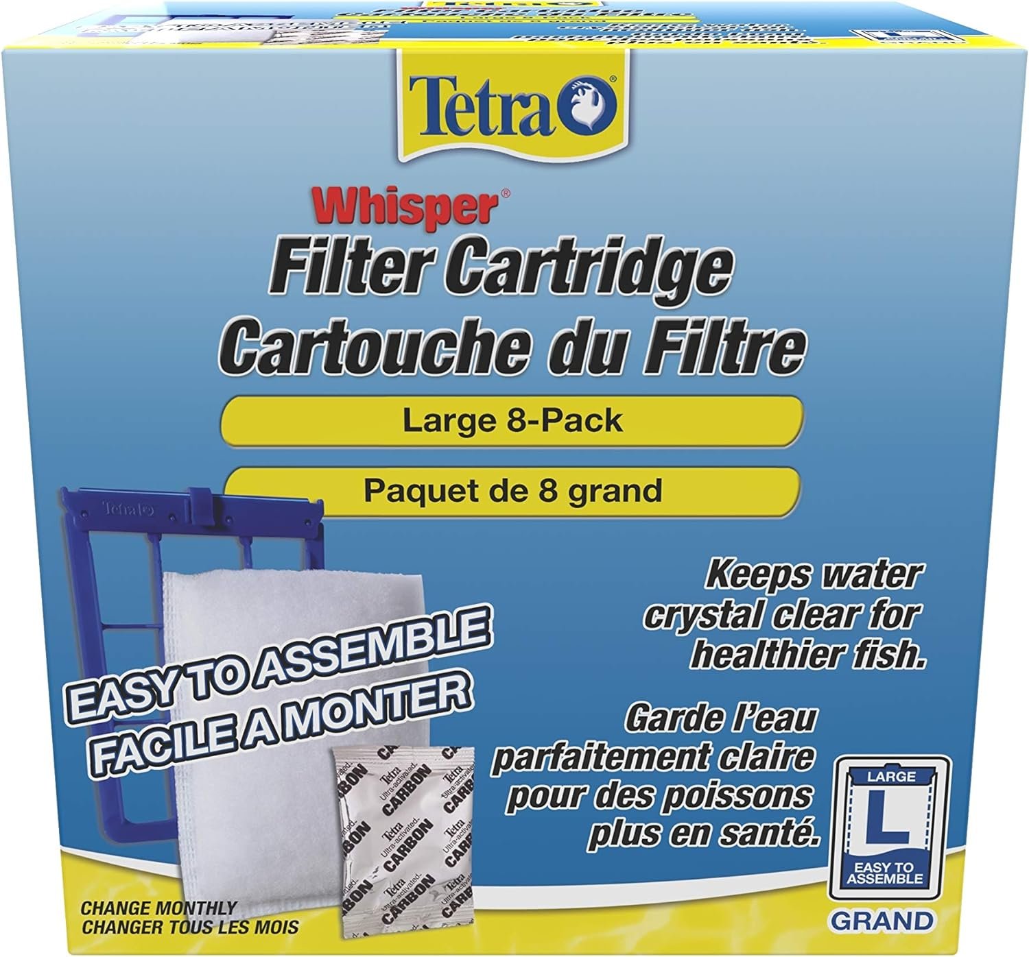 Tetra large whisper filter cartridges keep water clear for healthier fish. Cartridges are easy to assemble and should be changed monthly.