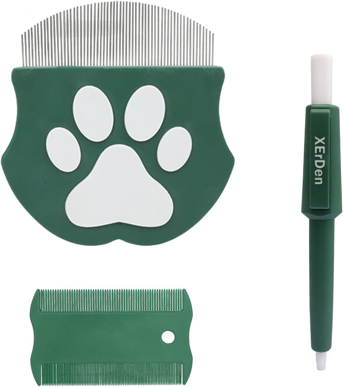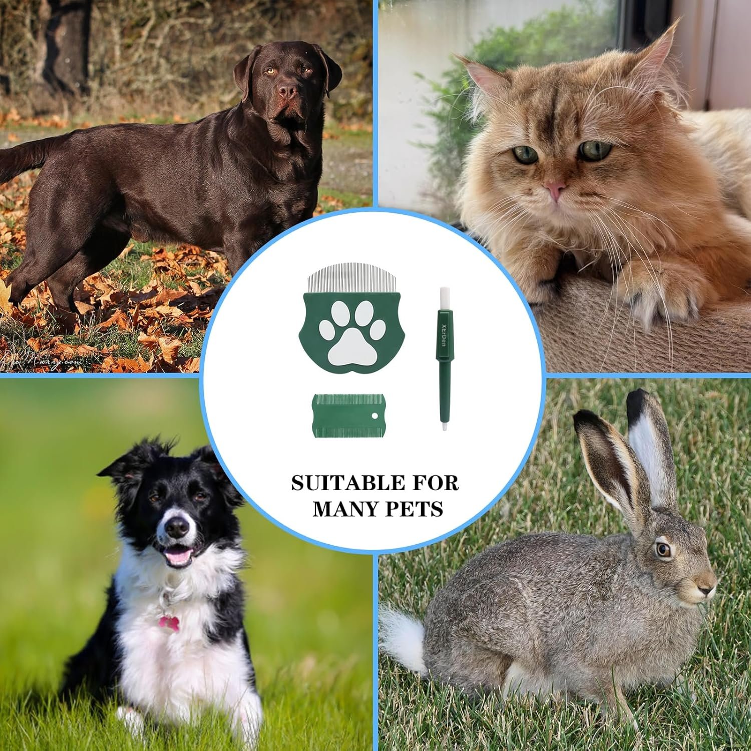 Tick Flea Remover Tool Kit 3Pcs for Dogs Cats, Lyme Prevention Plus 3 Tick Remover Tools, Eye Stain Remover Combs, Fine-Toothed Flea Comb, to Remove Fleas & Flea Eggs, Dirt, Fleas, Lice, Ticks