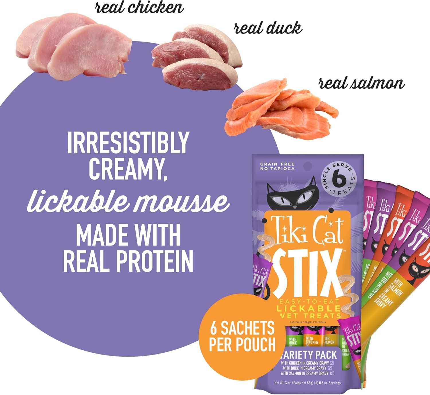 Tiki Cat® STIX™ Wet Cat Treats are single-serve, creamy mousse treats for cats. Serve individually or as a topper for dry food, they add a boost of flavor and moisture.