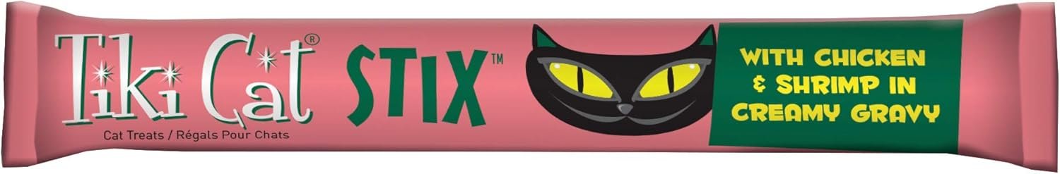 Tiki Cat Stix Wet Treats, Grain Free Lickable Mousse with Chicken & Shrimp in Creamy Gravy 6 Count (Pack of 1)