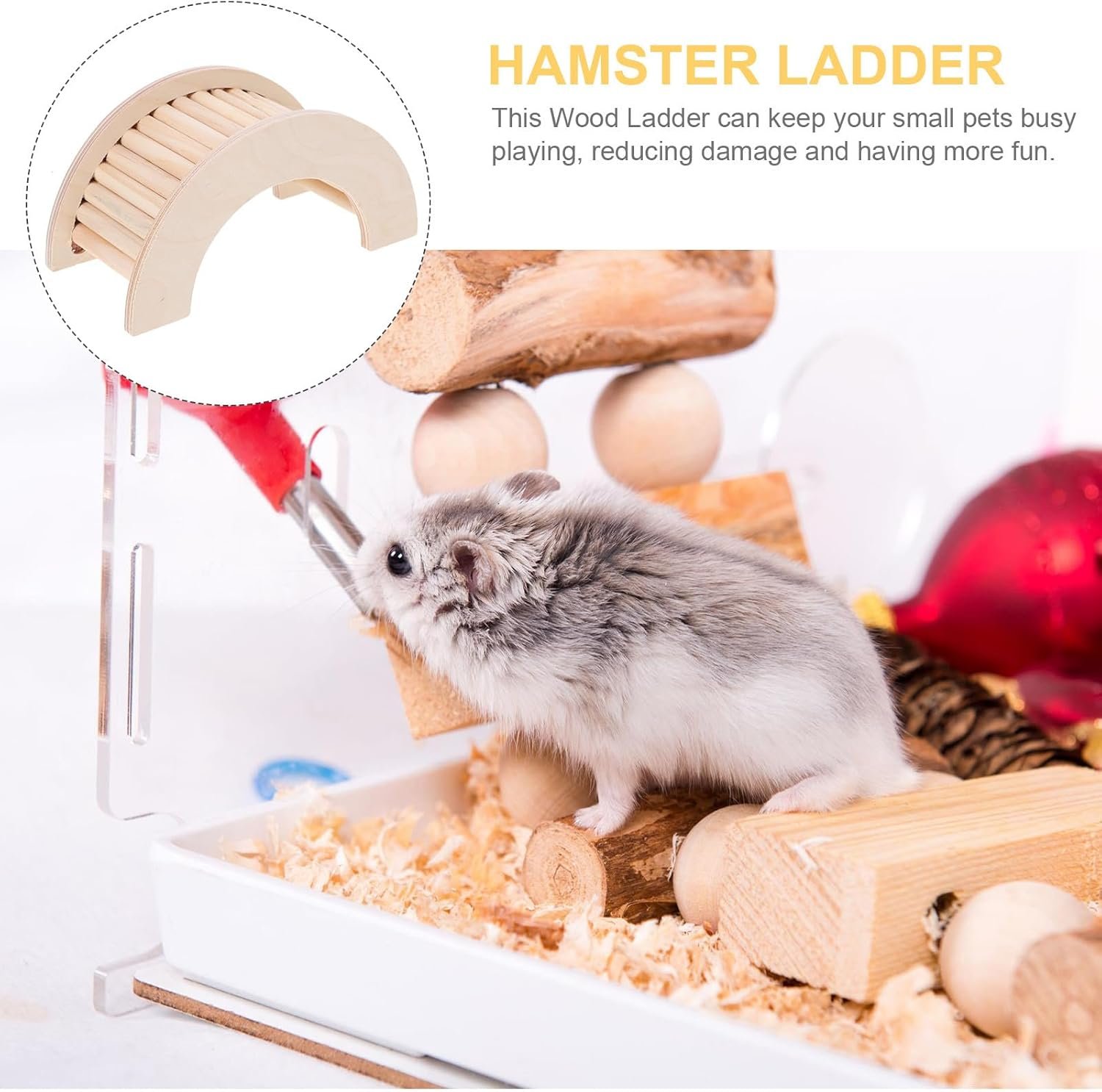 Hamster exploring –made of natural and safe wood material, which is sturdy and practical for small pets to play with,hamster climbing ladder